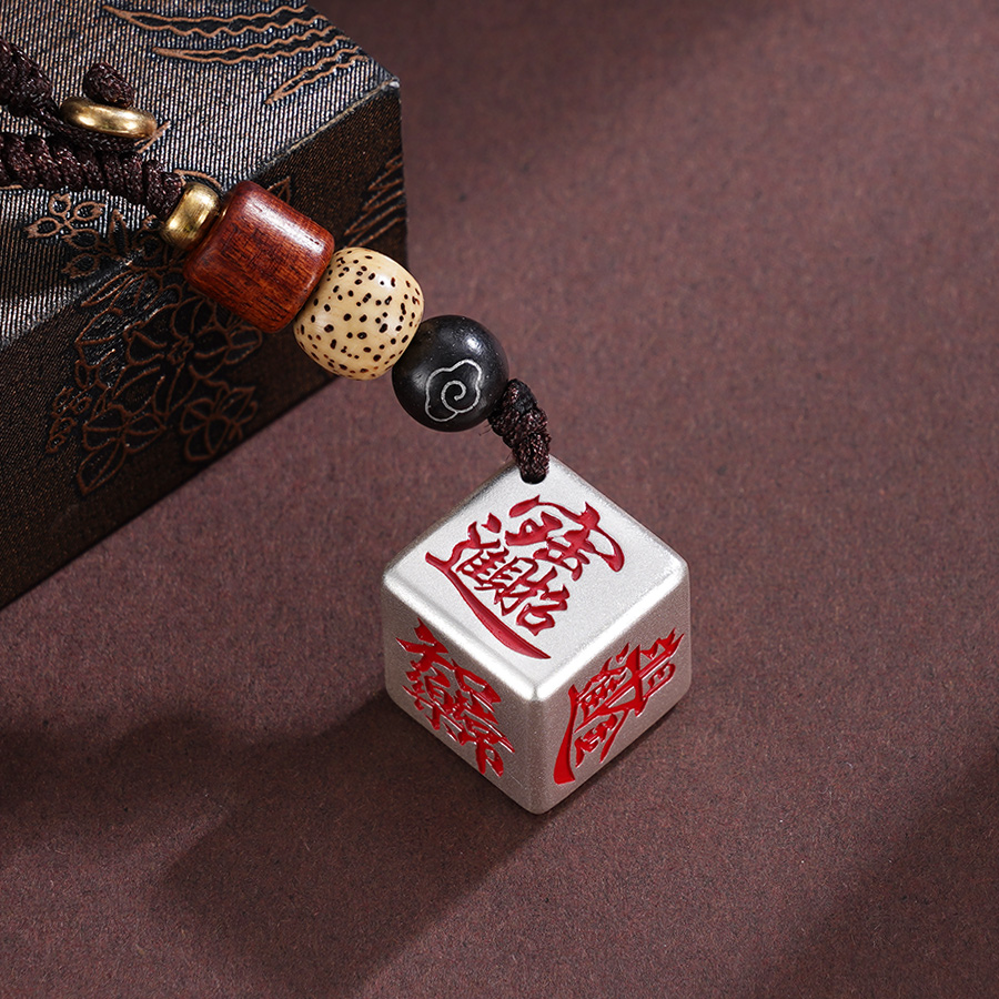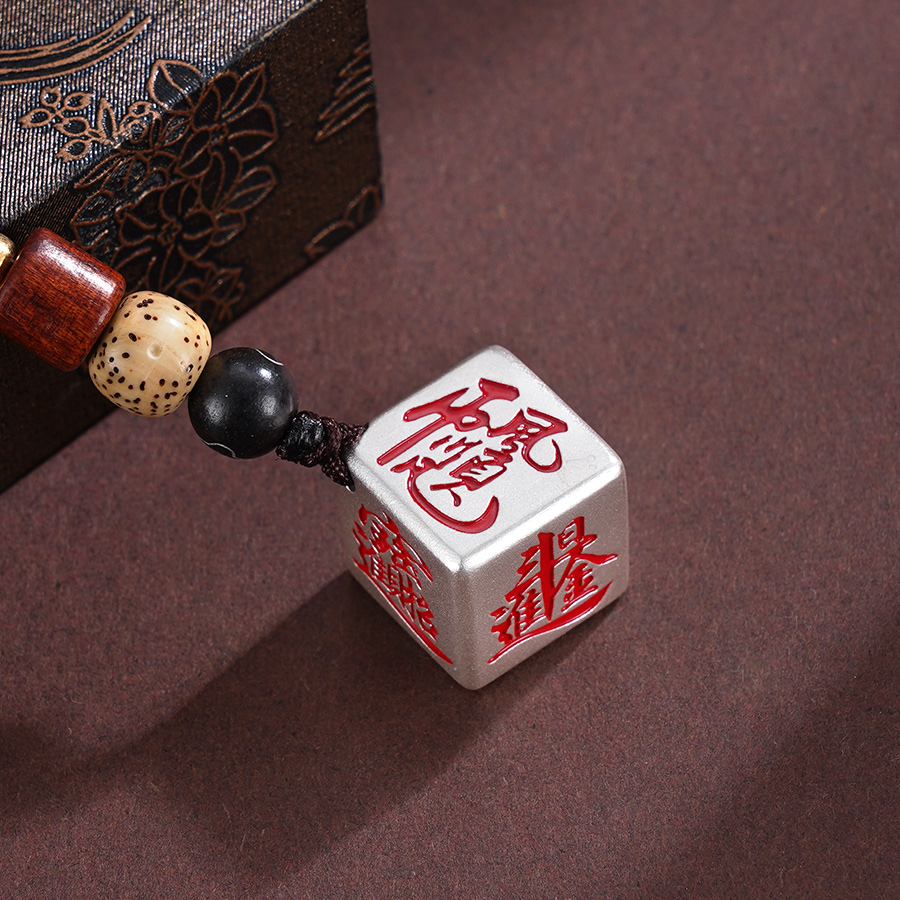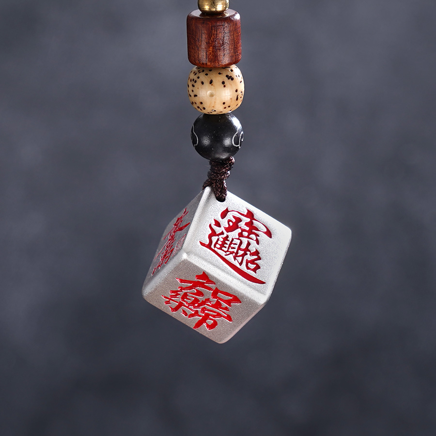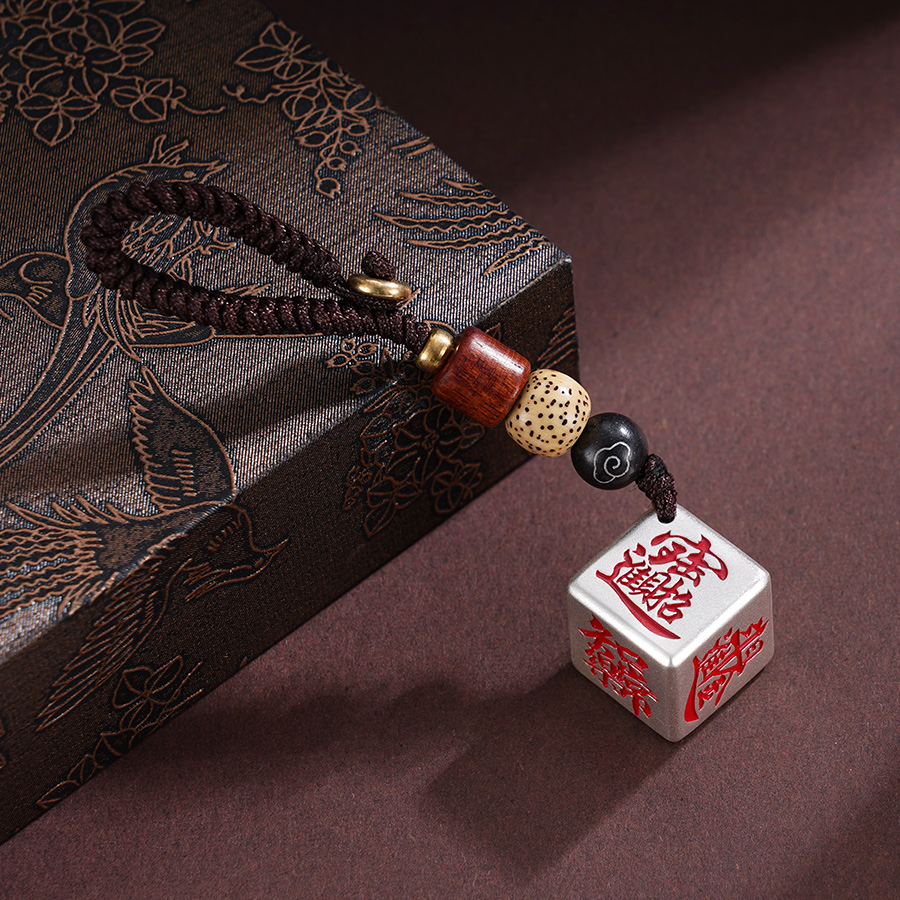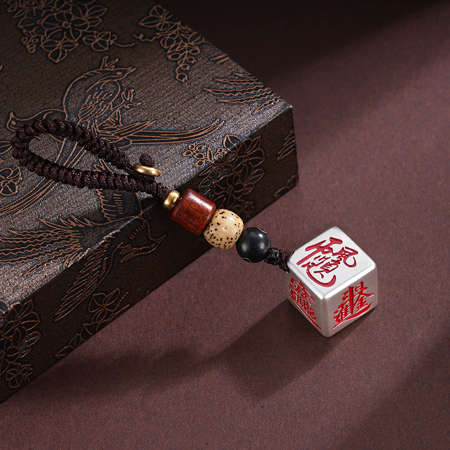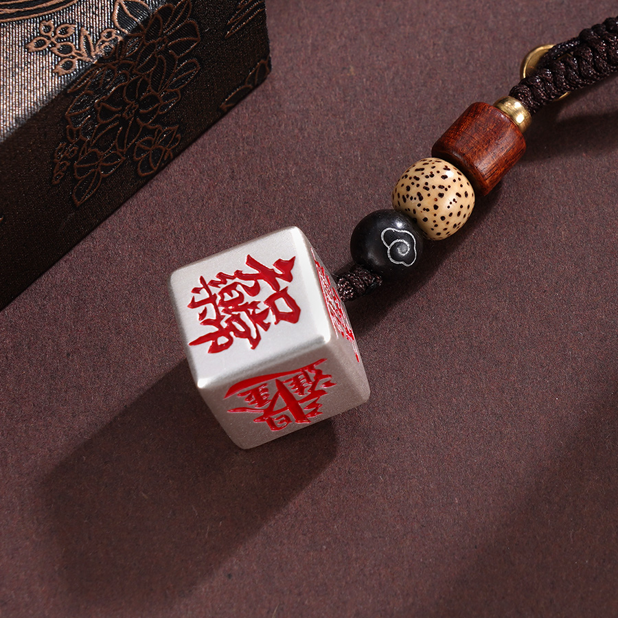 【寓意】:作品灵感源自骰子,采用足银材质,1:1精妙还原,其上錾刻吉祥文字。日常把玩,扭转运势,寓意“四方利赢,六方来财”。