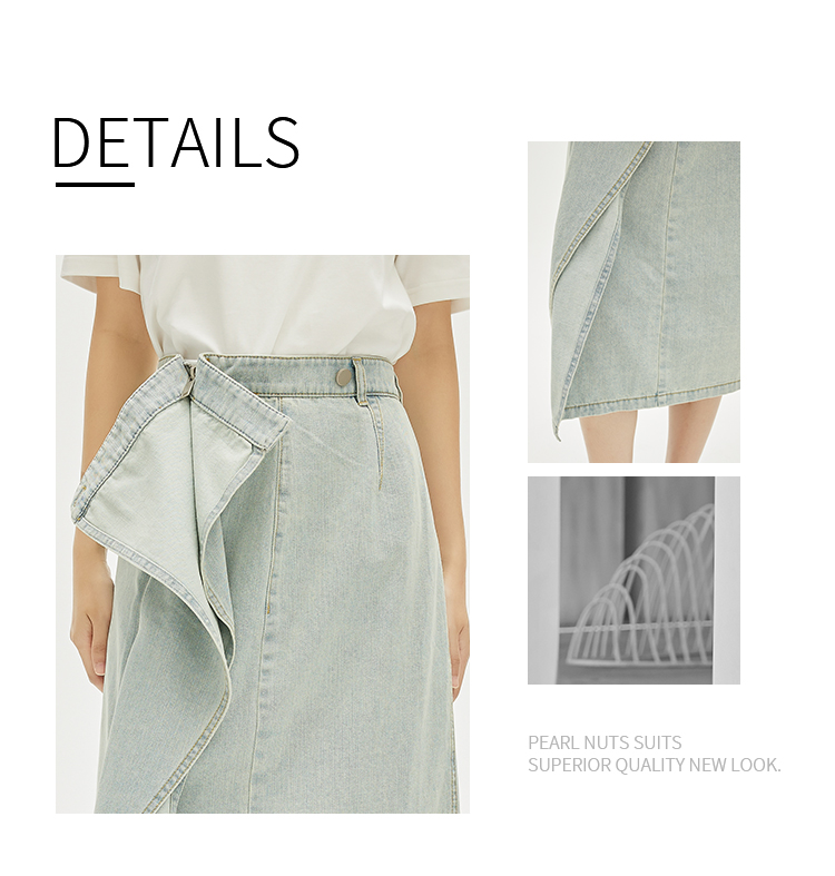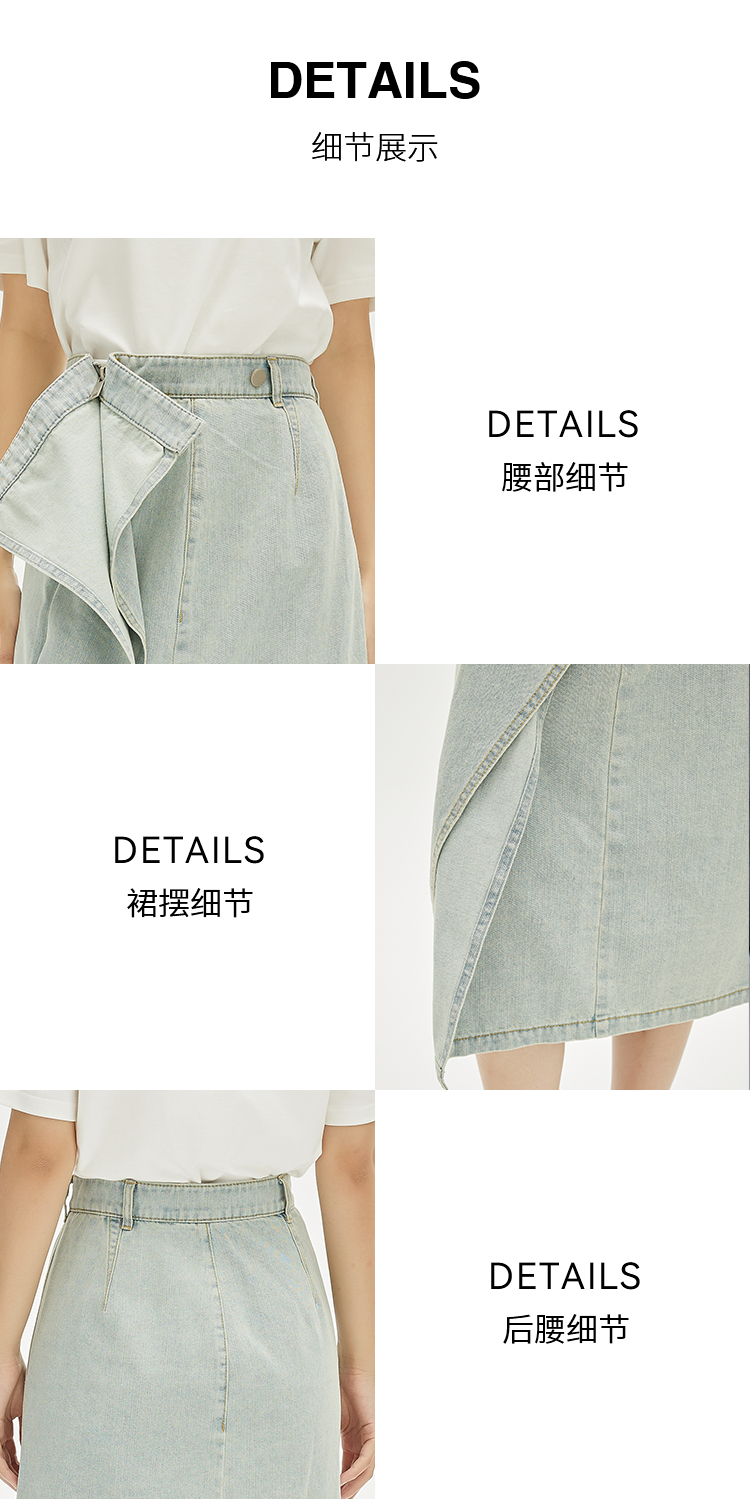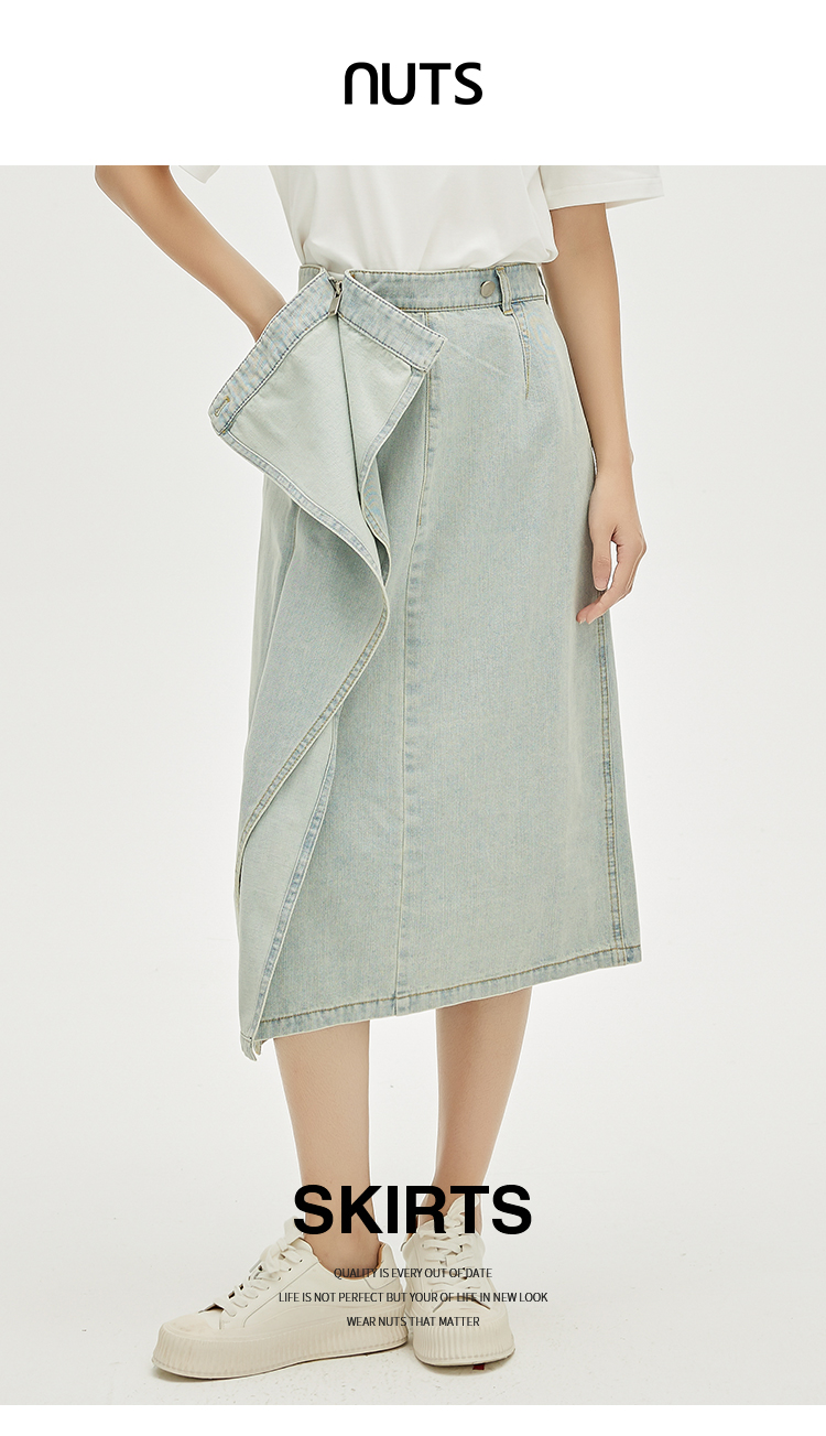 NUTS秋季新款一片式设计感a字包臀时尚水洗牛仔半裙女332061150