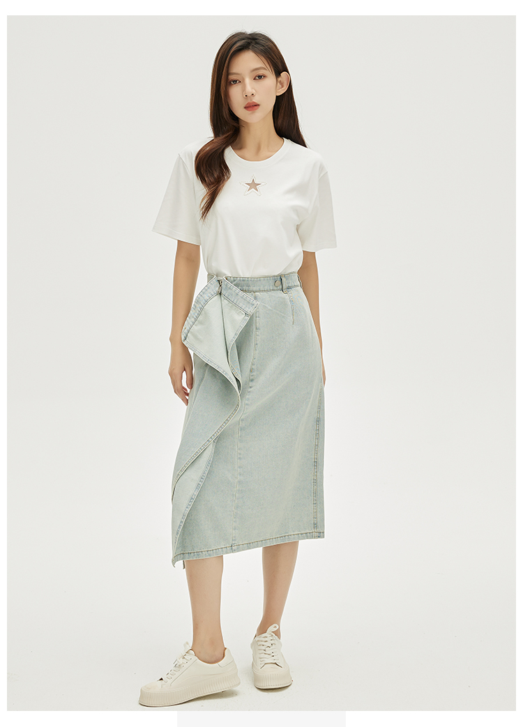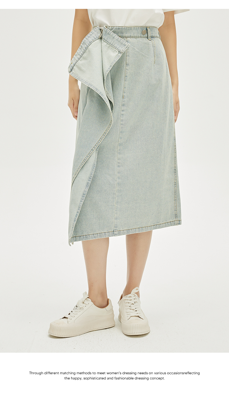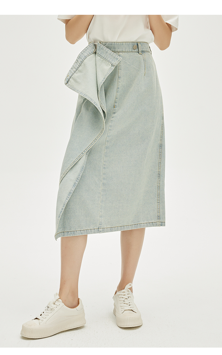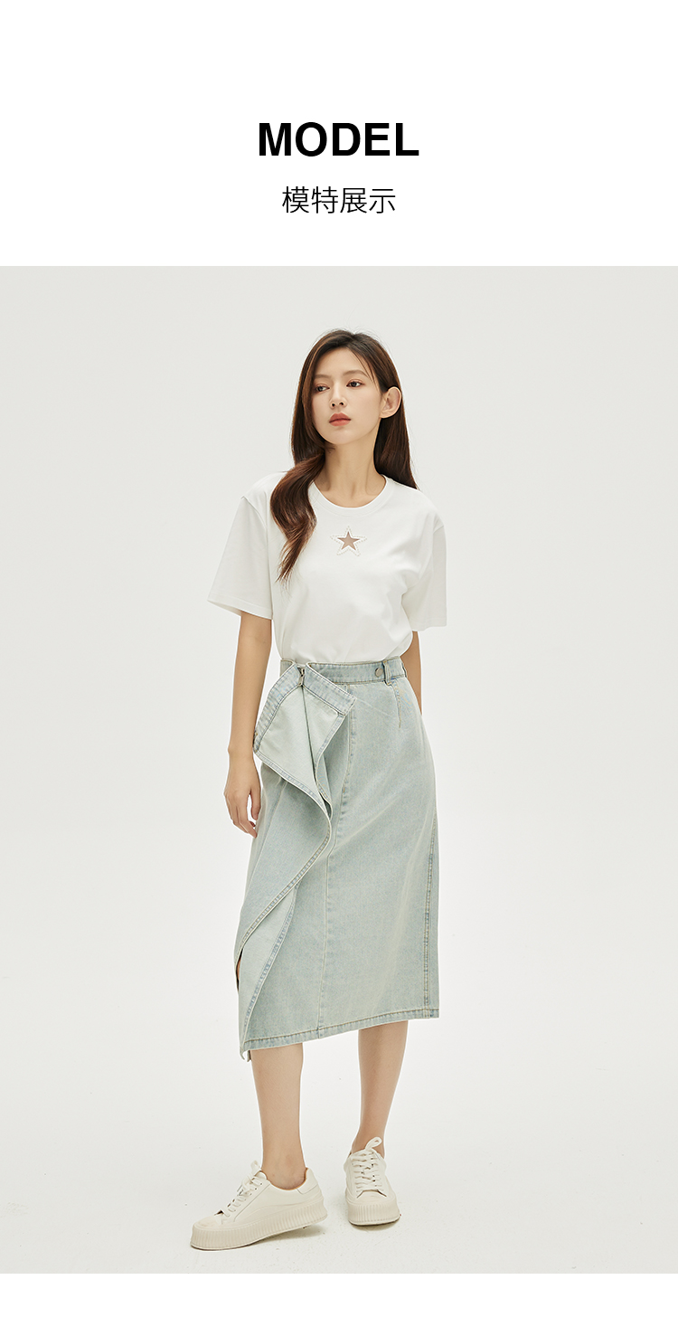 NUTS秋季新款一片式设计感a字包臀时尚水洗牛仔半裙女332061150