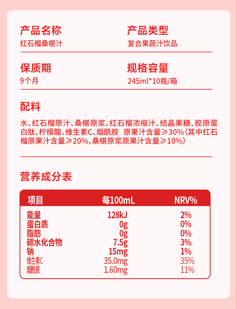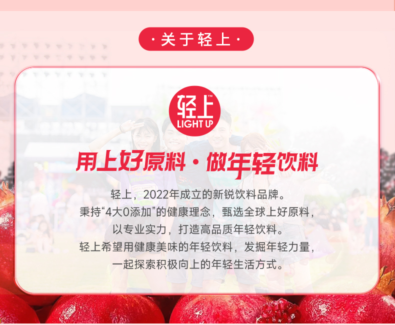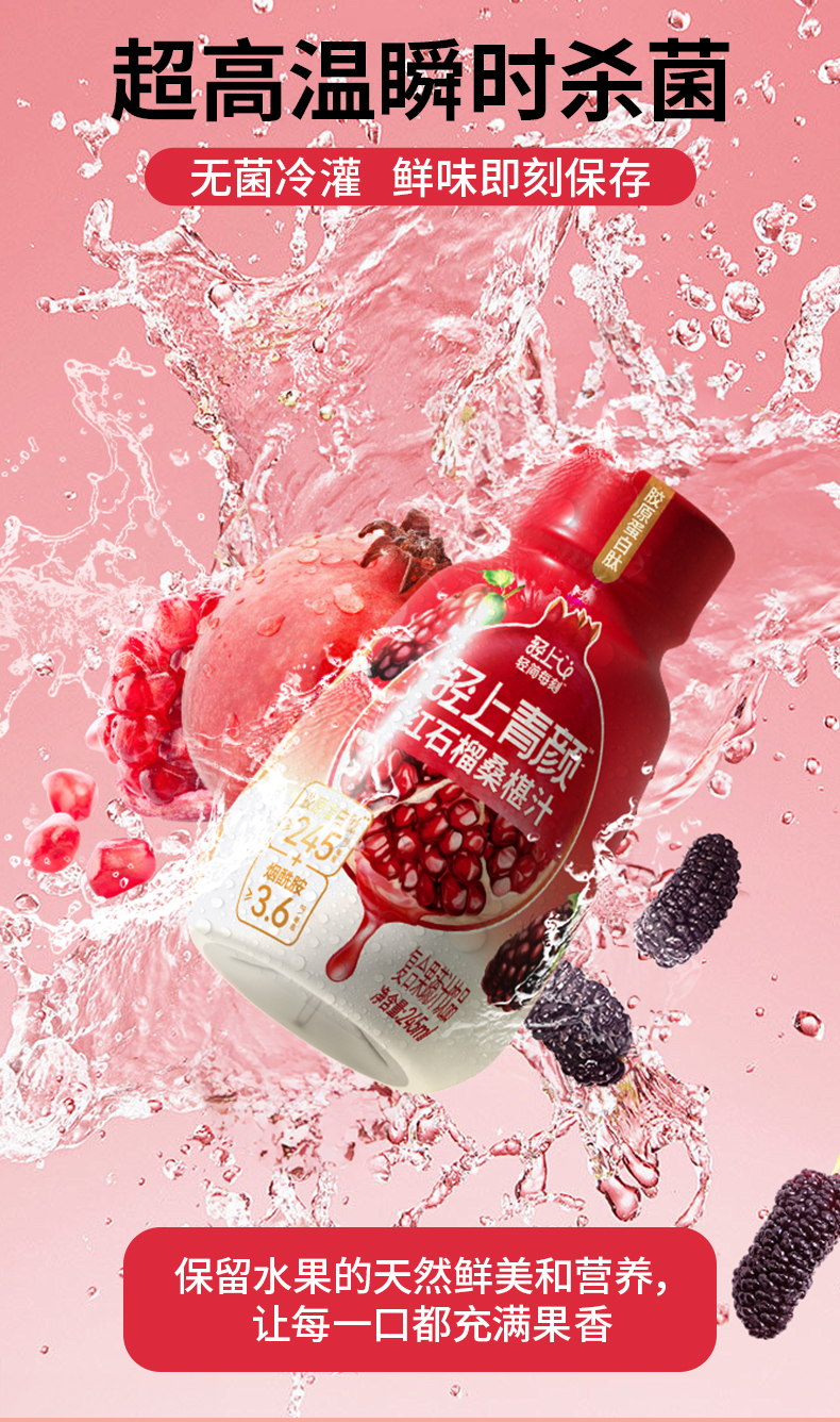 轻上 红石榴桑椹汁245ml*10瓶 复合果蔬汁饮品 0添加蔗糖 48小时发货