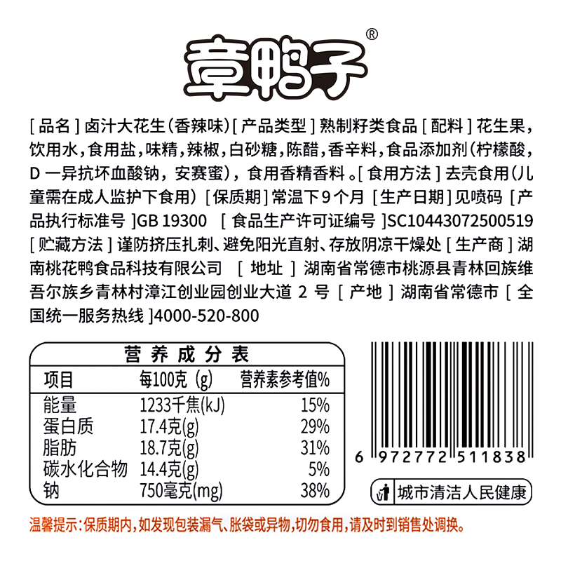 A章鸭子-400G香辣卤汁大花生(快递)