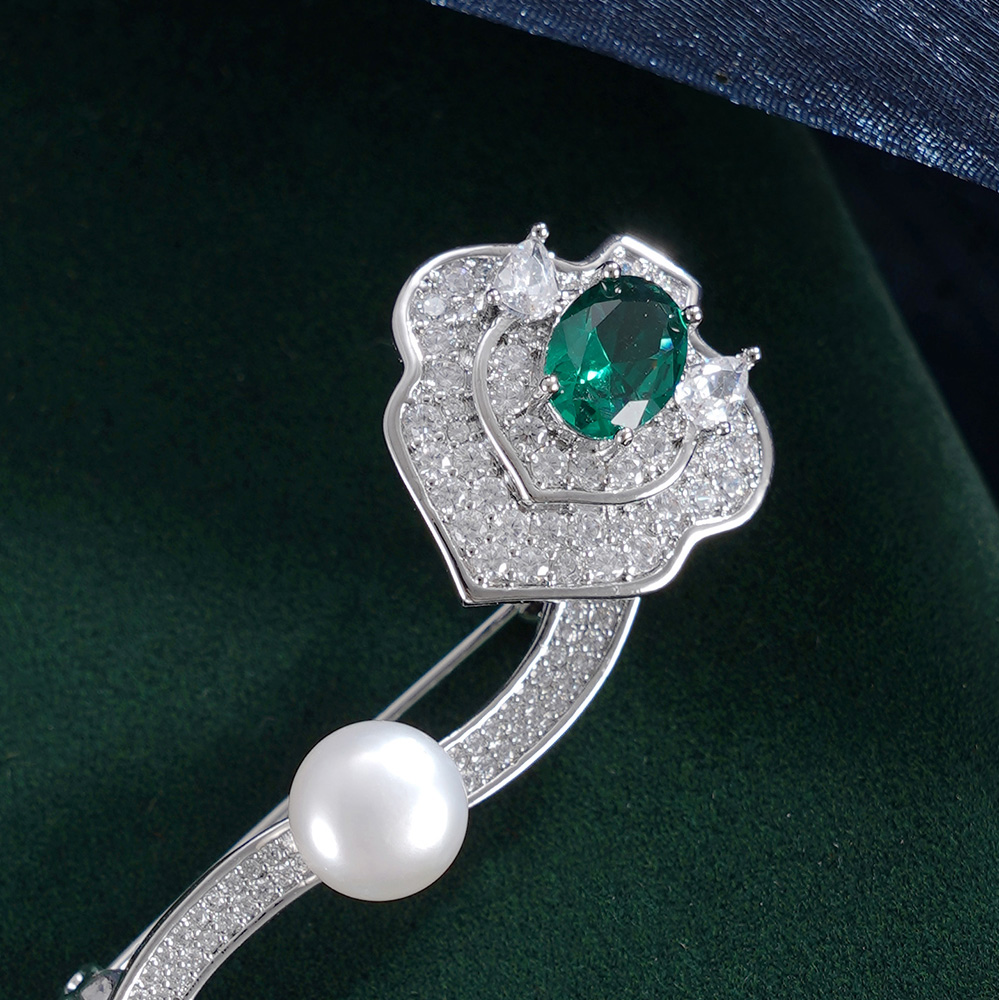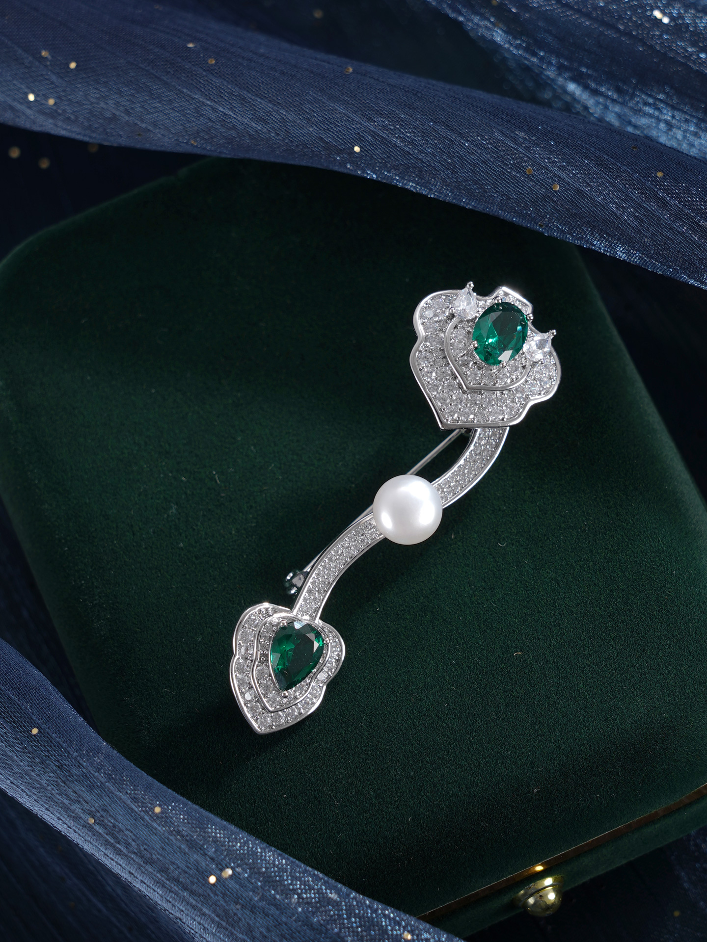 子佩集【如意珍宝】珍珠惜王妃胸针【ZXXZ007】7.5mm珠绿如意2601
