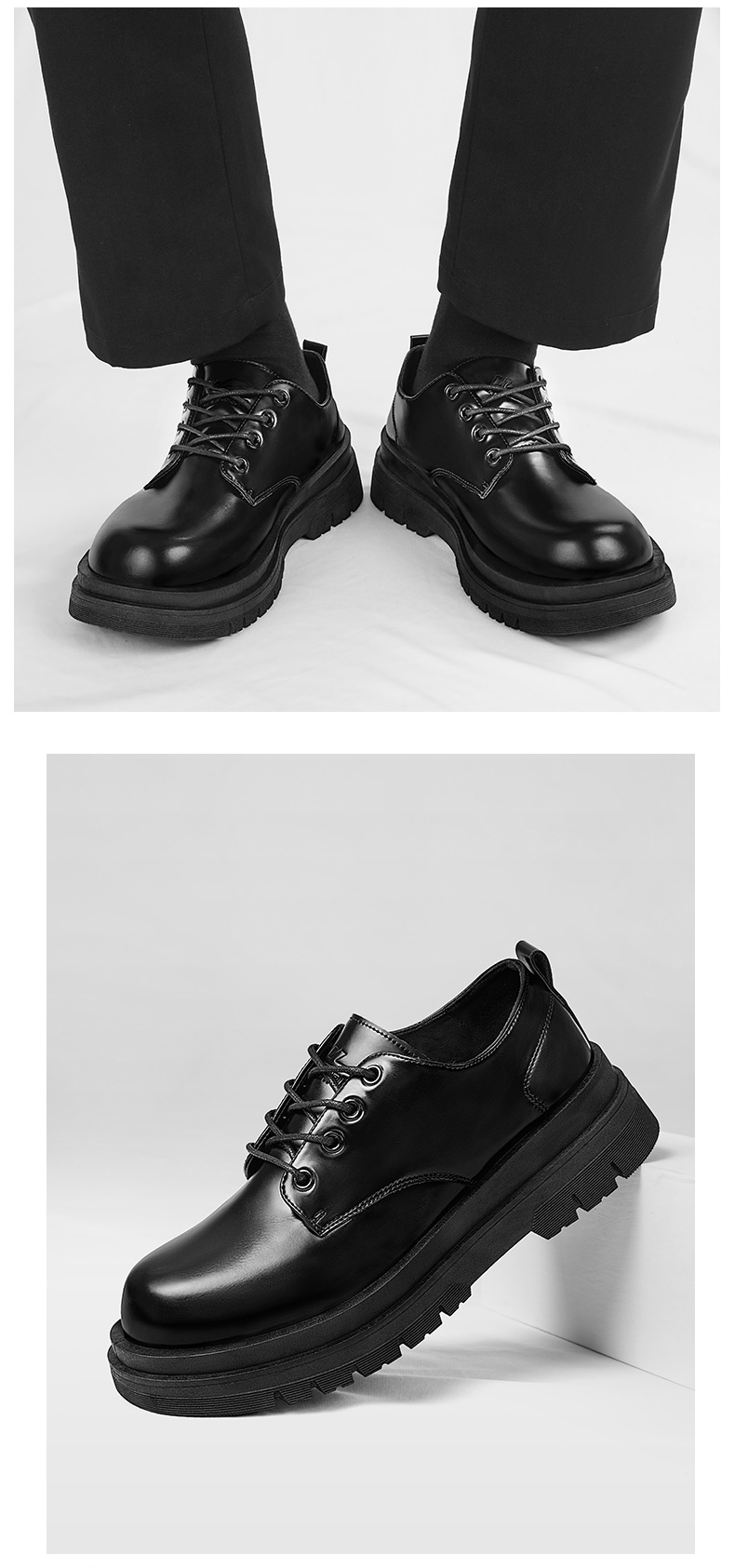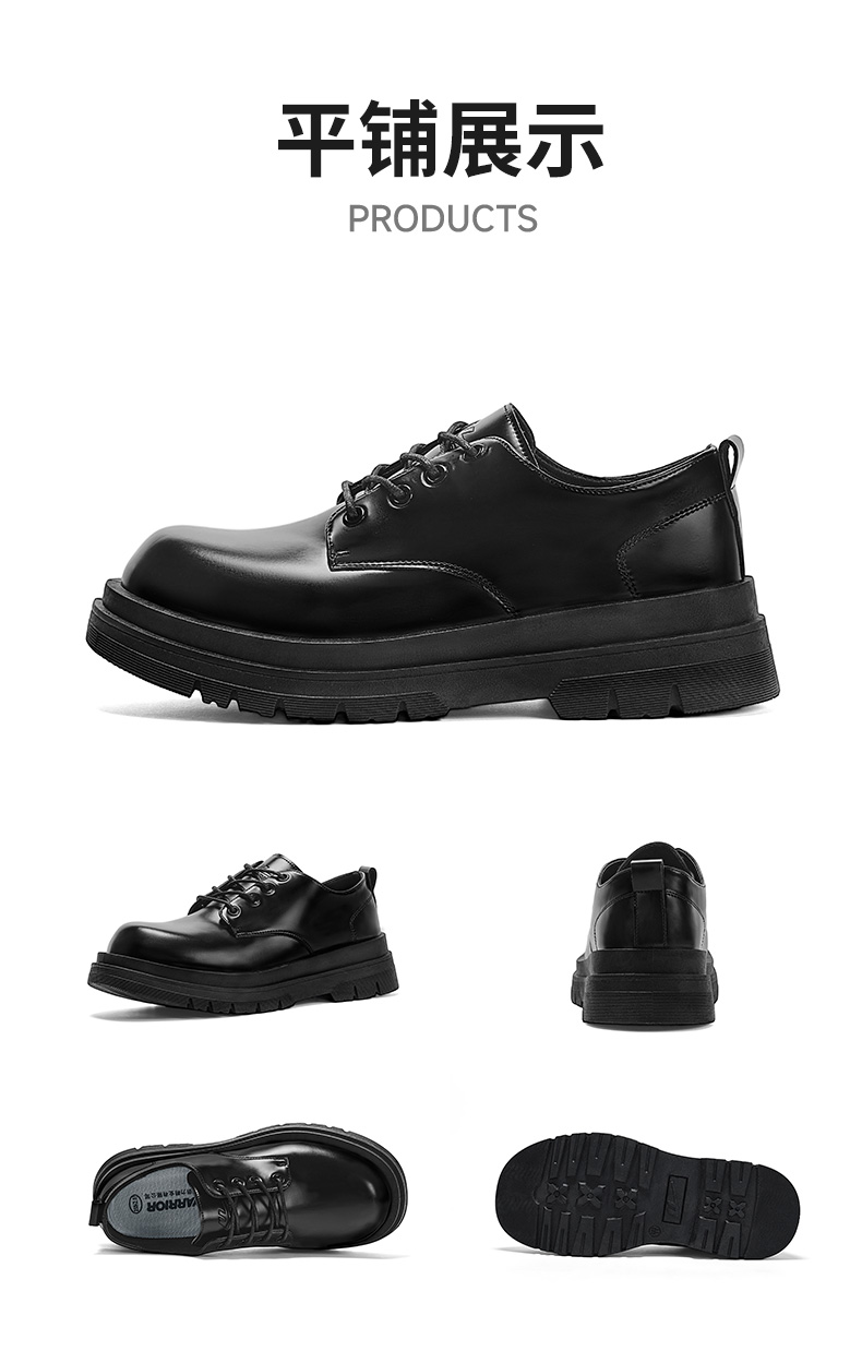 回力皮鞋男款2026新款正装商务休闲结婚增高黑色大圆头厚底德比鞋 WXP(WZ)-2636
