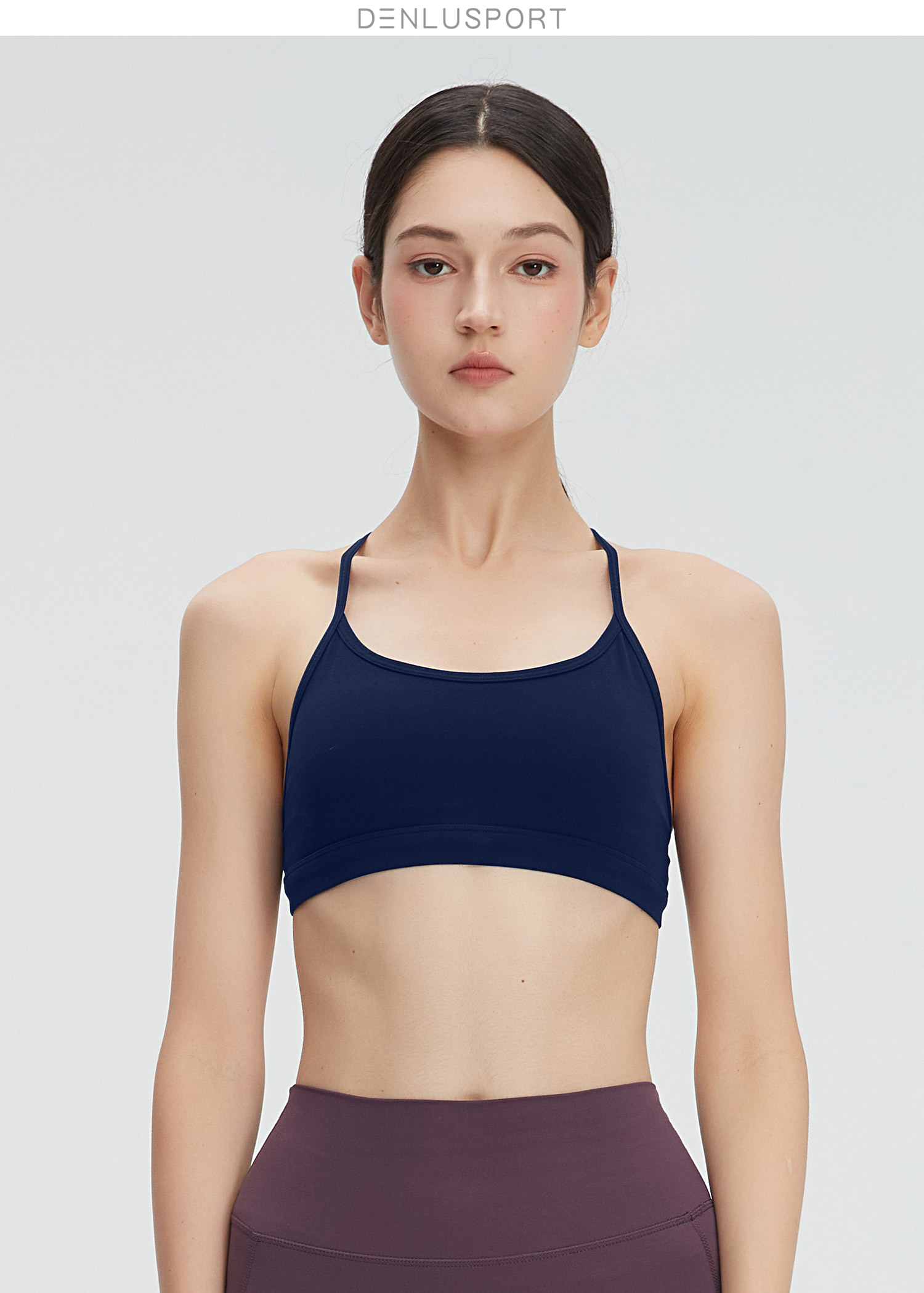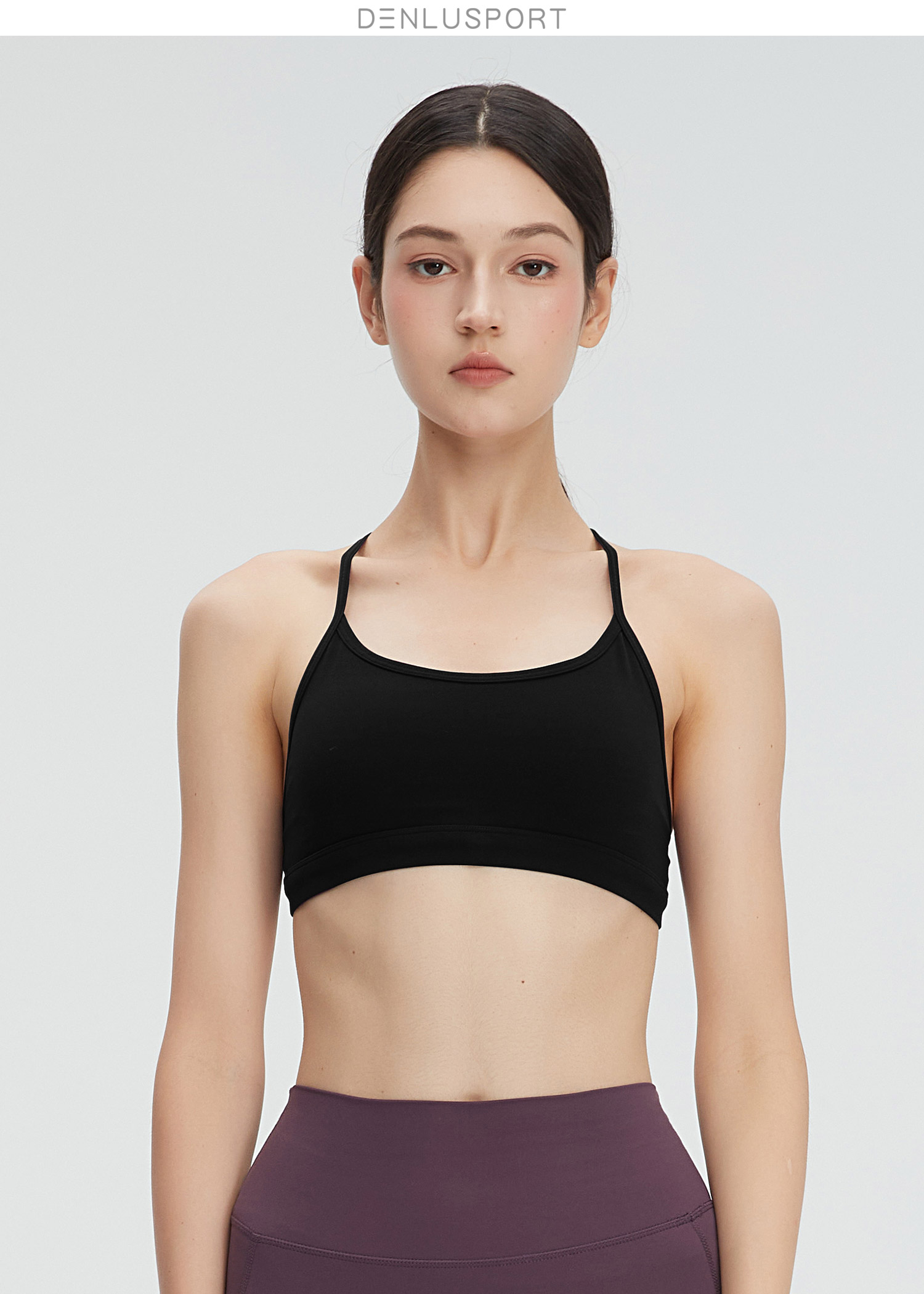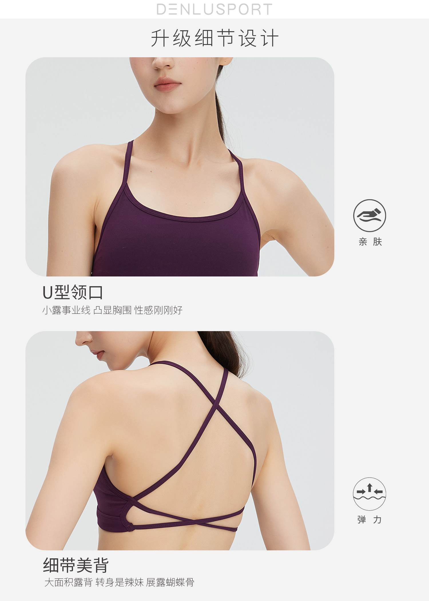 细肩带交叉美背瑜伽背心 固定杯中强度运动一体式胸垫文胸 DY66207