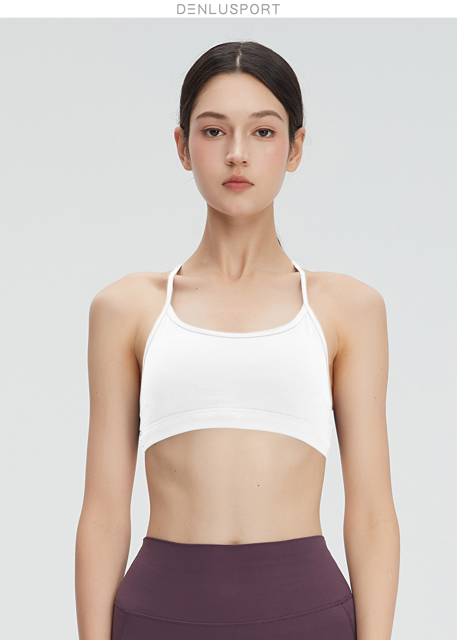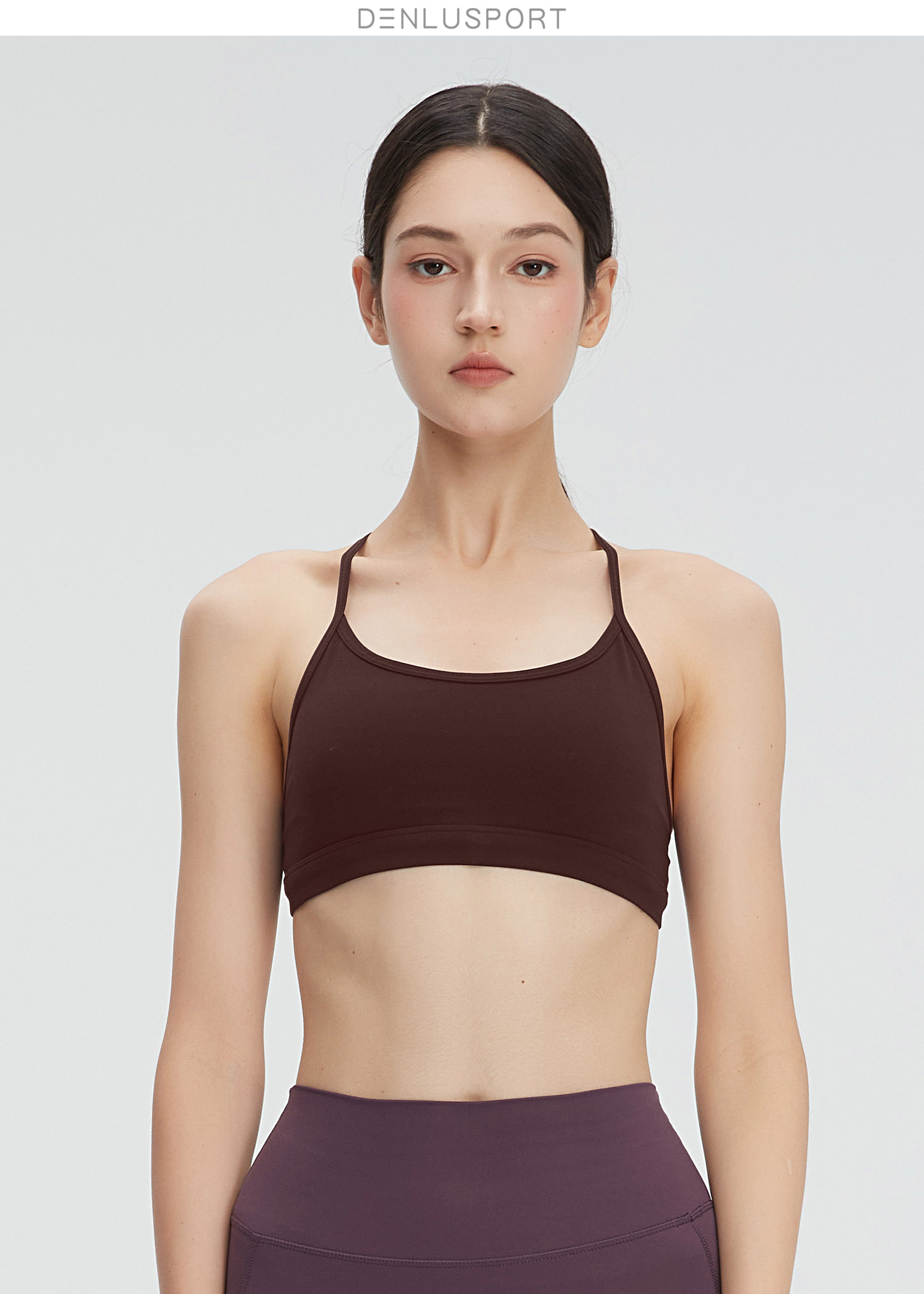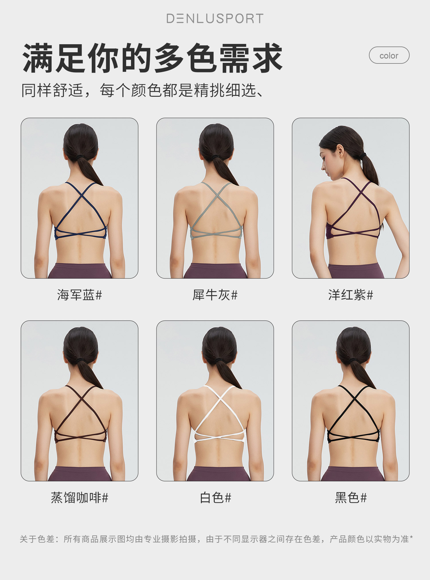 细肩带交叉美背瑜伽背心 固定杯中强度运动一体式胸垫文胸 DY66207