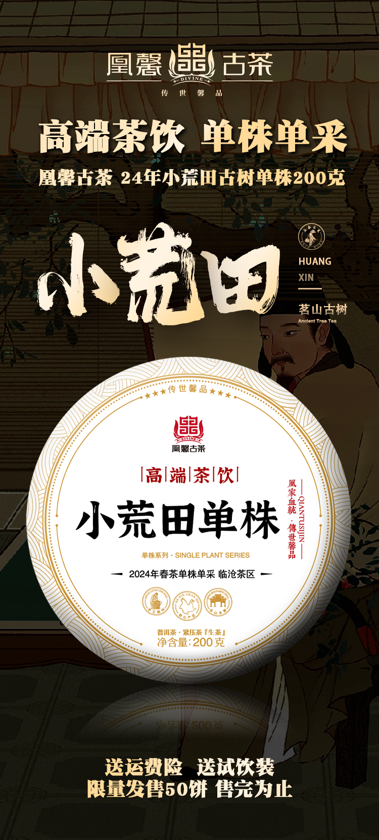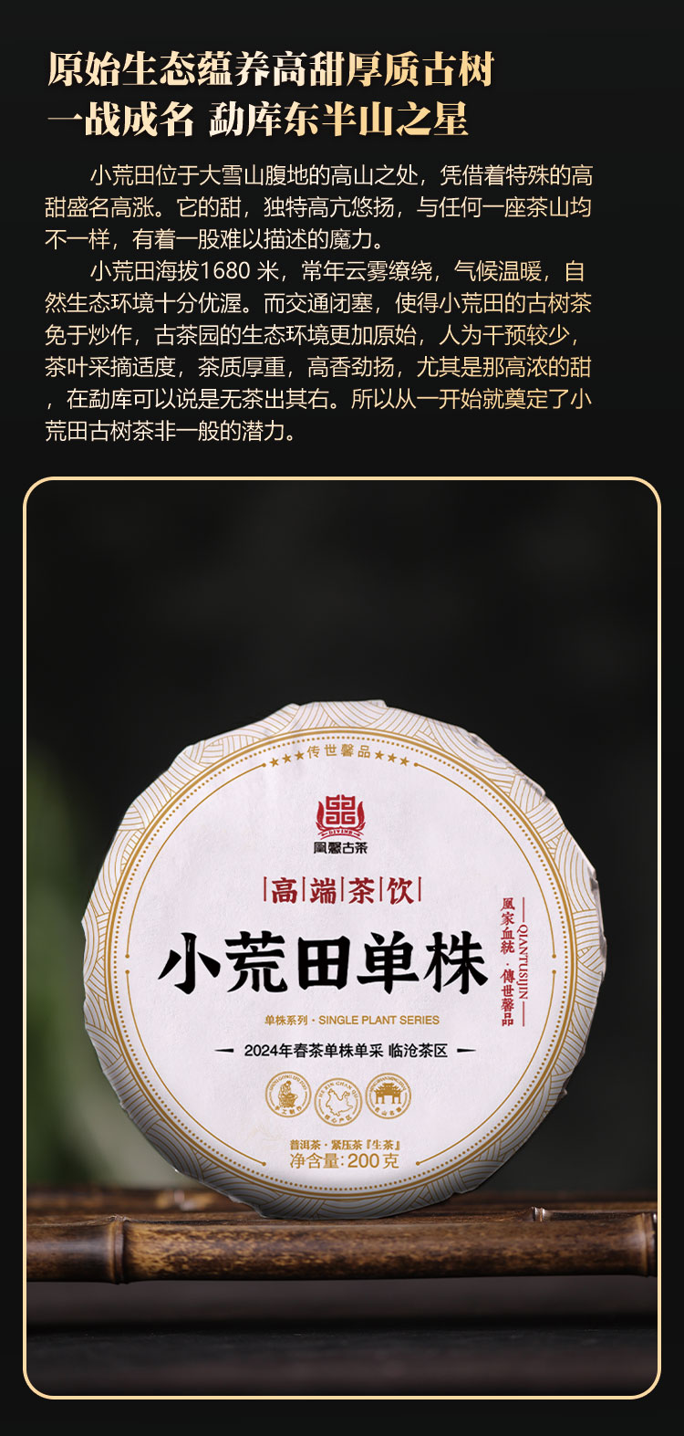 凰馨2024年小荒田单株200克 古树普洱茶生茶