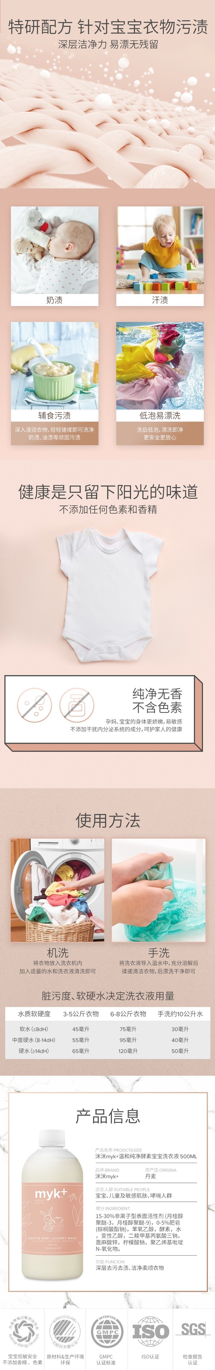 myk+洣洣温和纯净宝宝洗衣液专用婴儿幼儿衣物清洗液洗衣精500ml【洣洣】