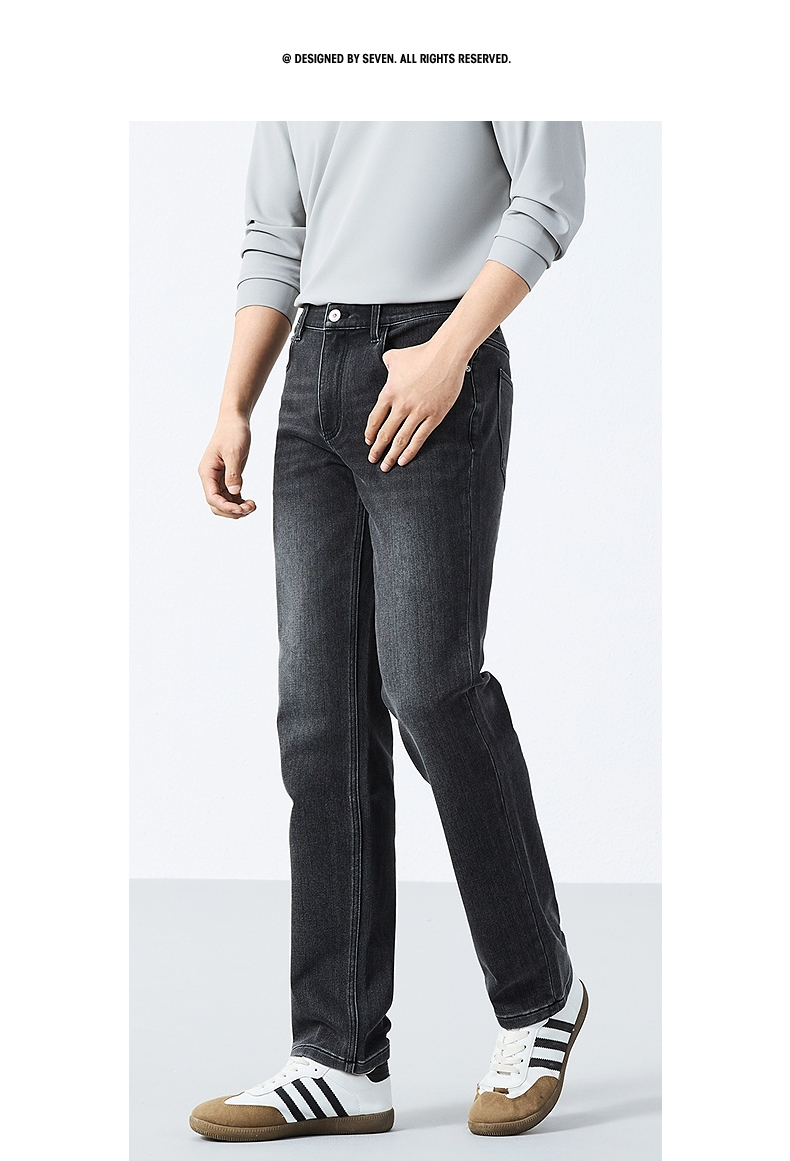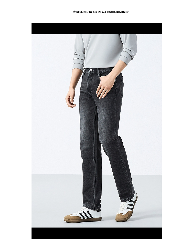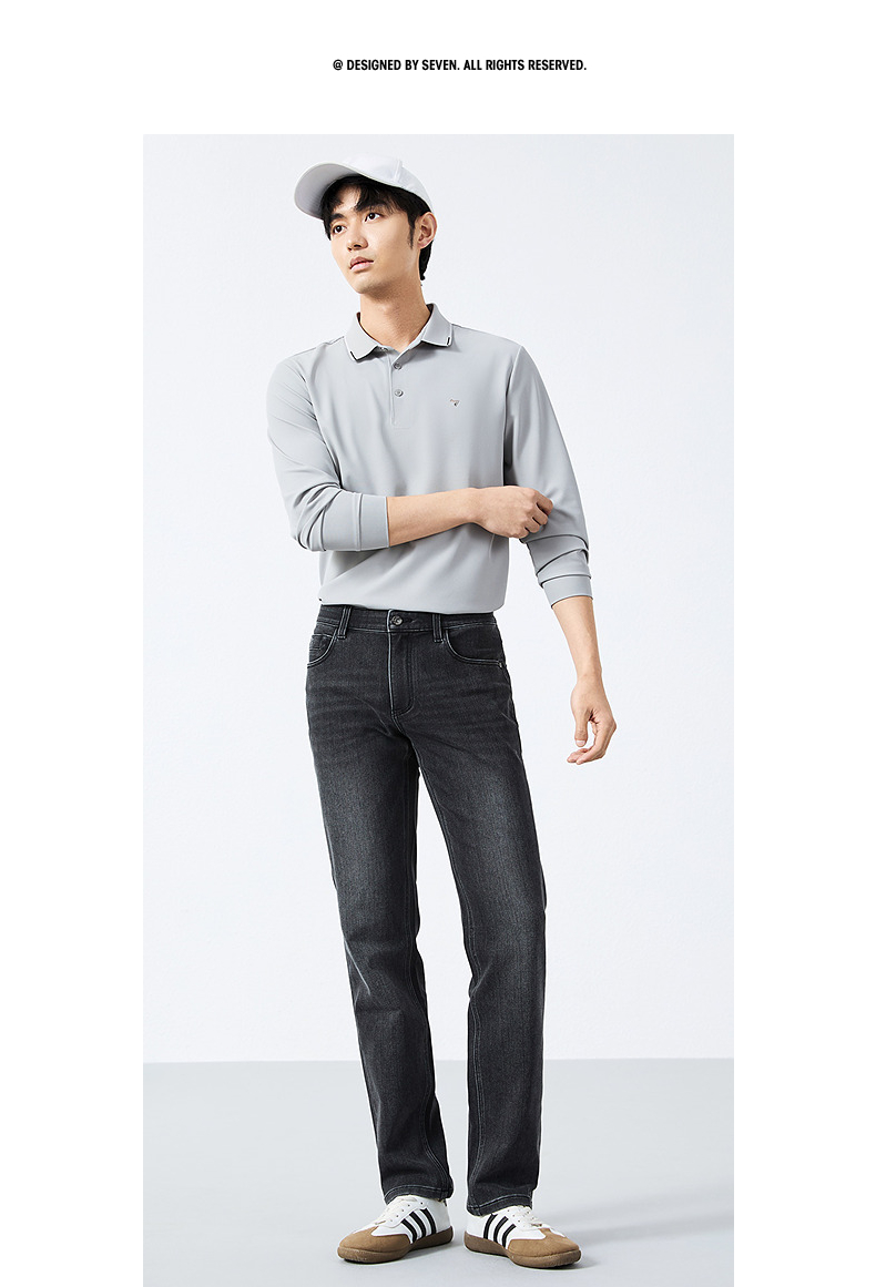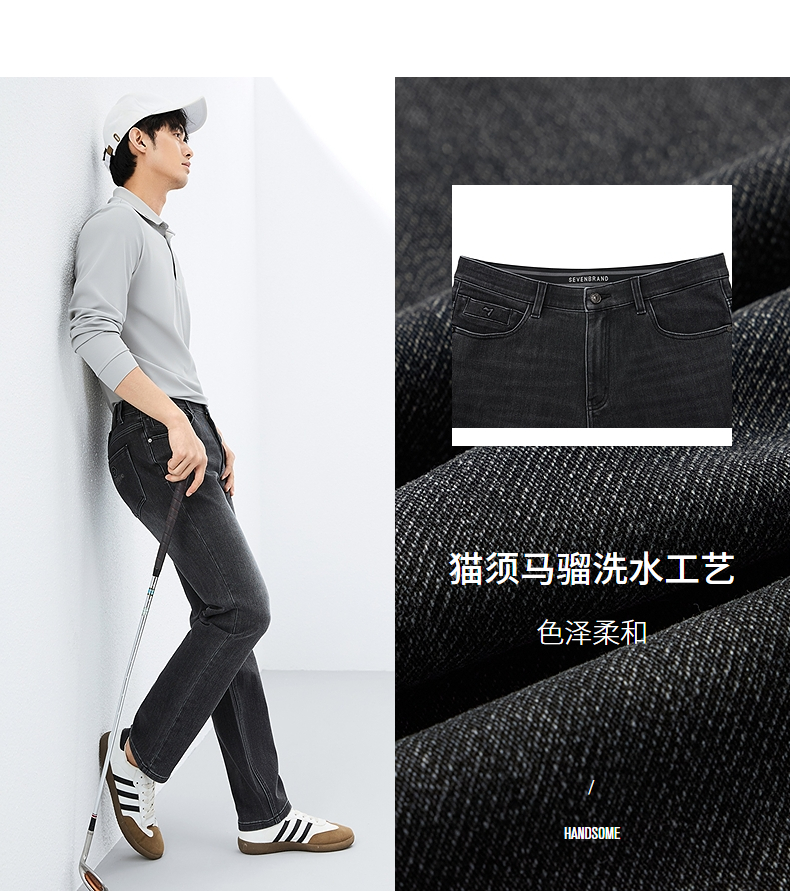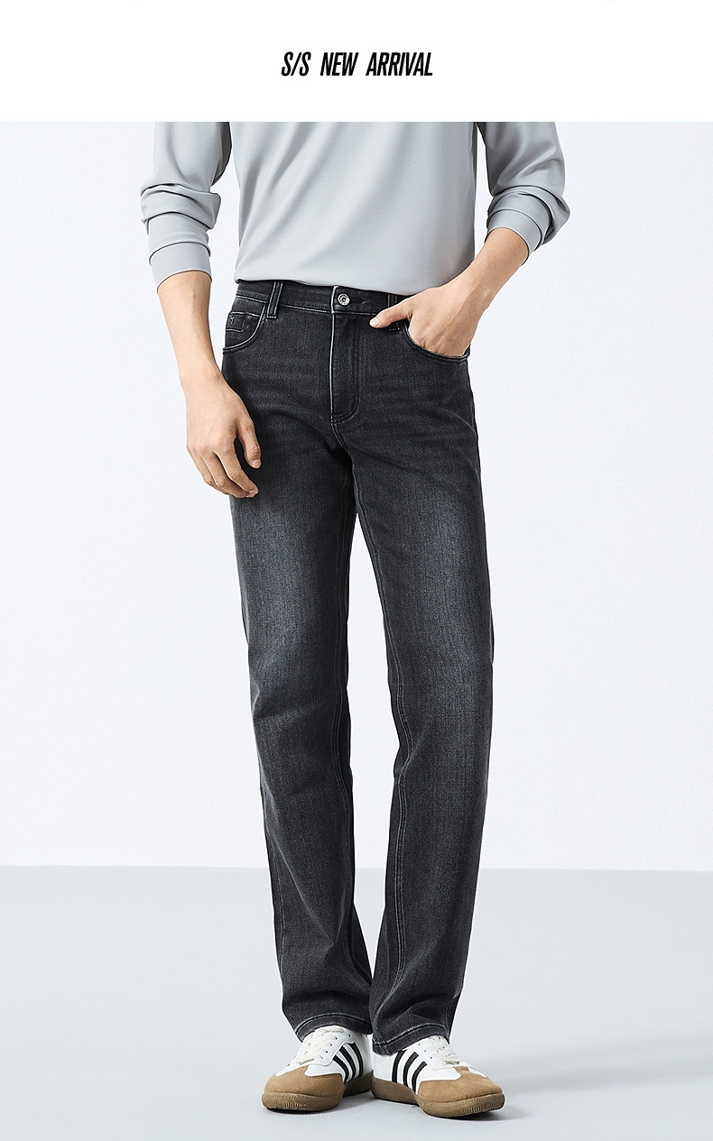 柒牌莱卡水洗牛仔长裤男2025春季新款时尚潮流休闲百搭男士直筒裤 128H70730