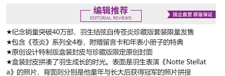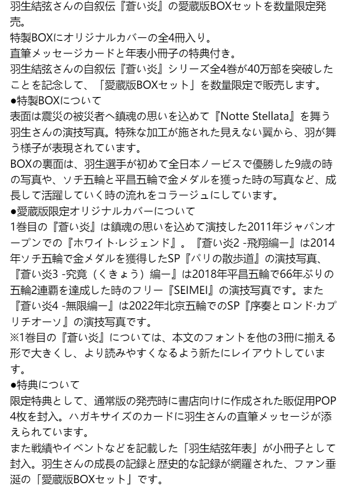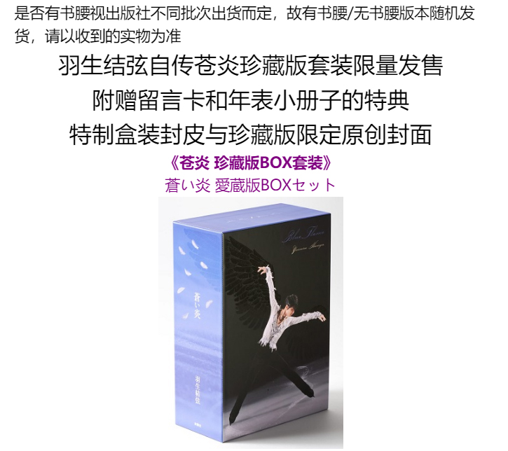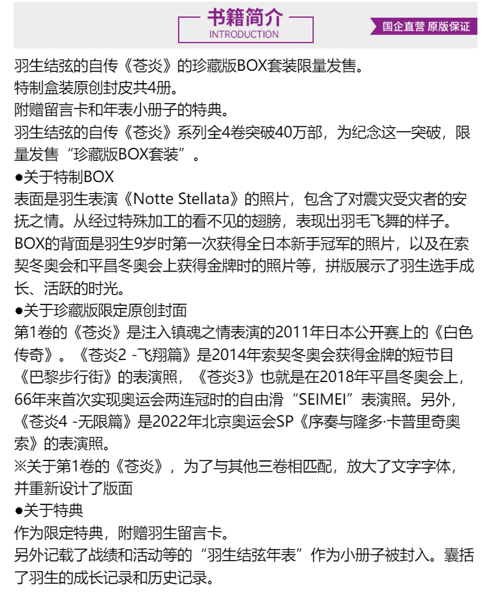 【中商原版】羽生结弦 羽生結弦 Hanyu Yuzuru 苍炎 爱藏版盒装1-4册套装 附留言卡和年表小册子 日文原版 蒼い炎 愛蔵版BOXセット