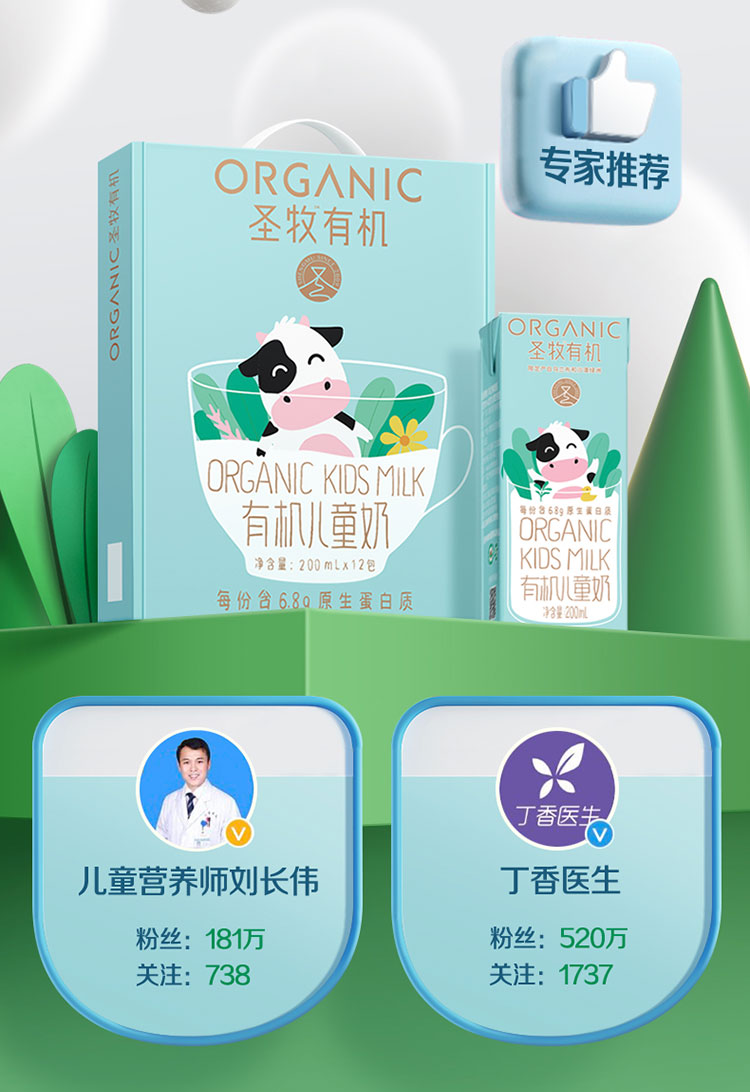 圣牧有机儿童奶200ml/盒*12