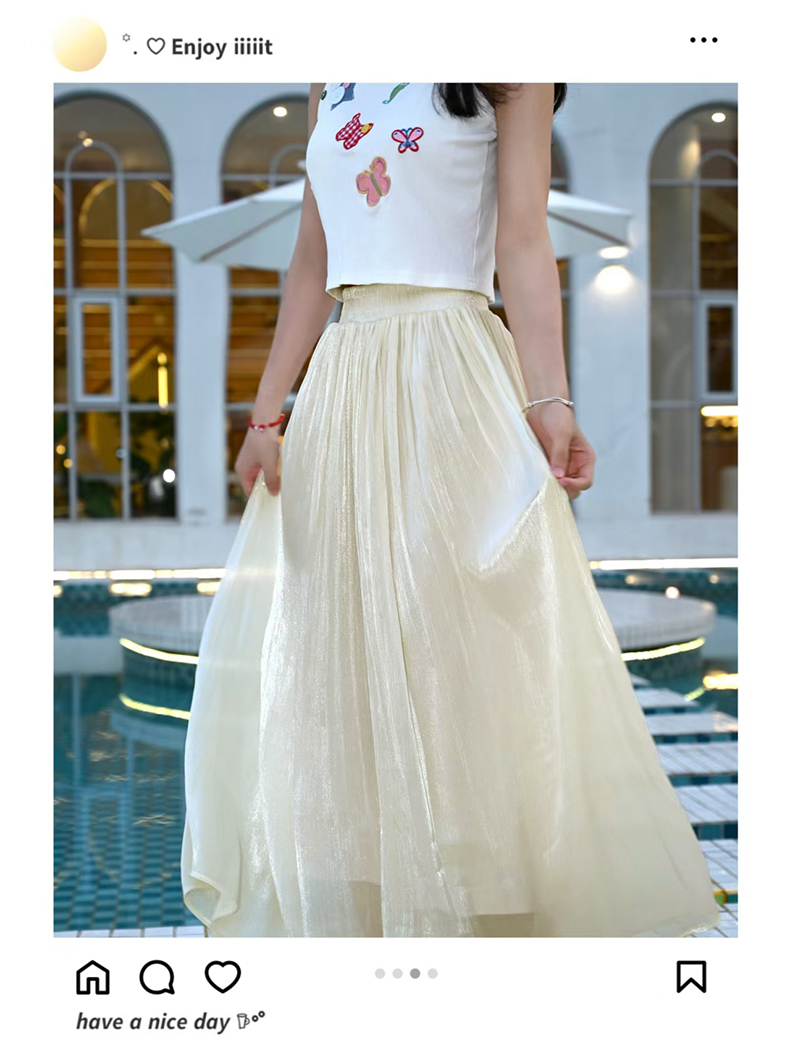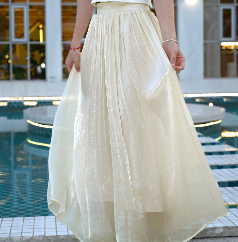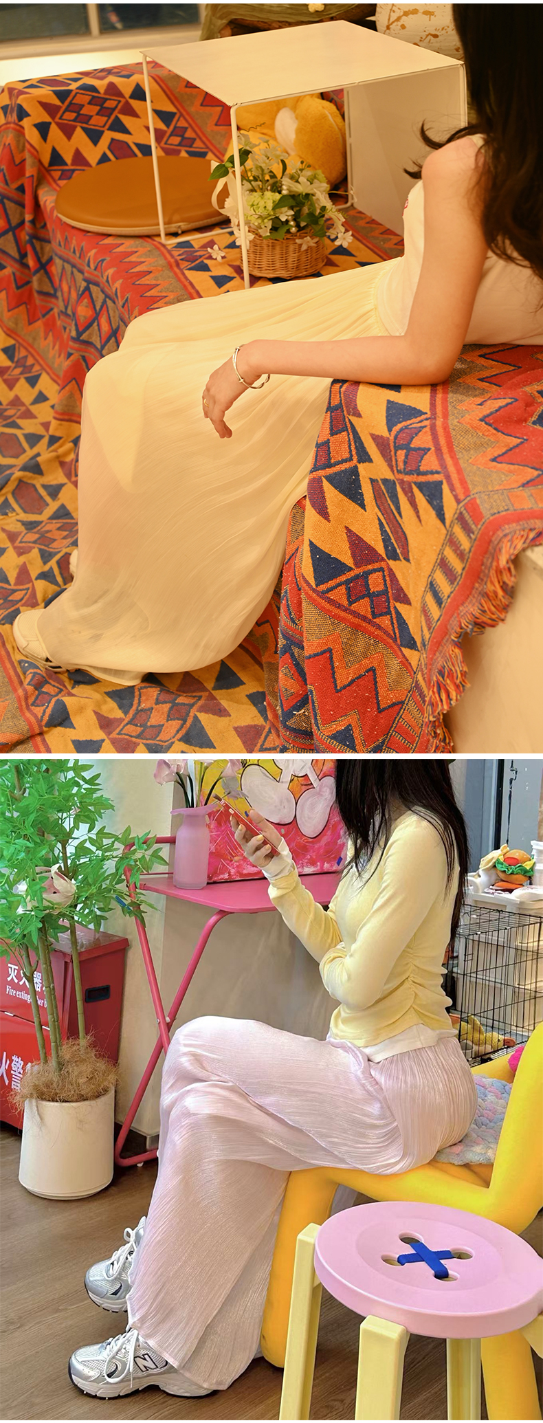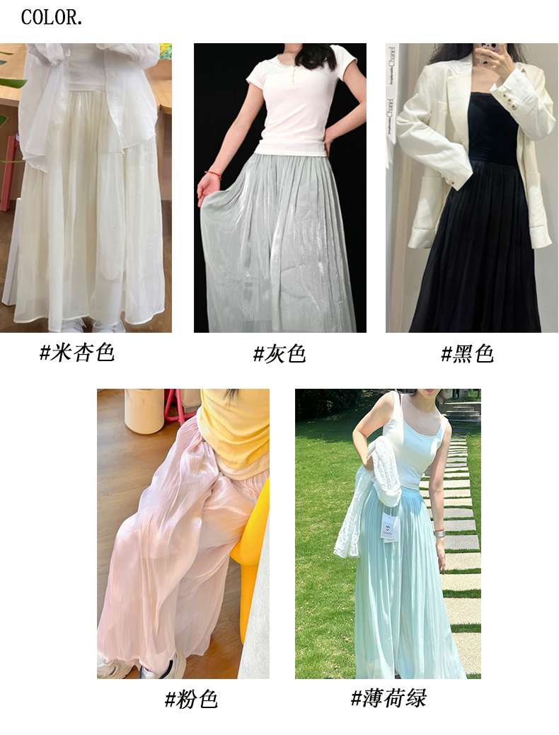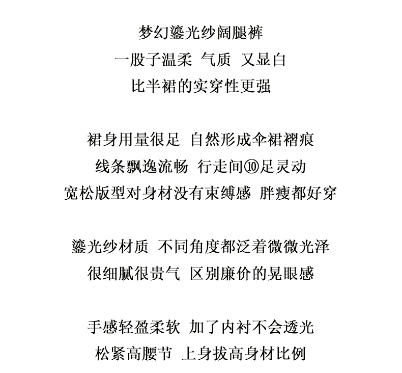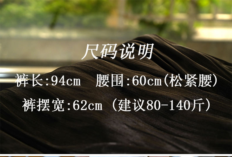 【产品参数】裤长:94cm,腰围:60cm(松紧腰),裤褶宽:62cm