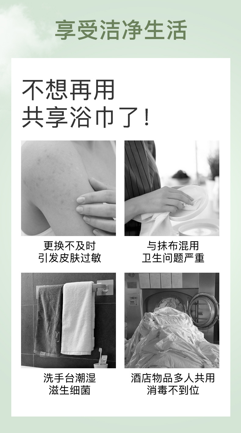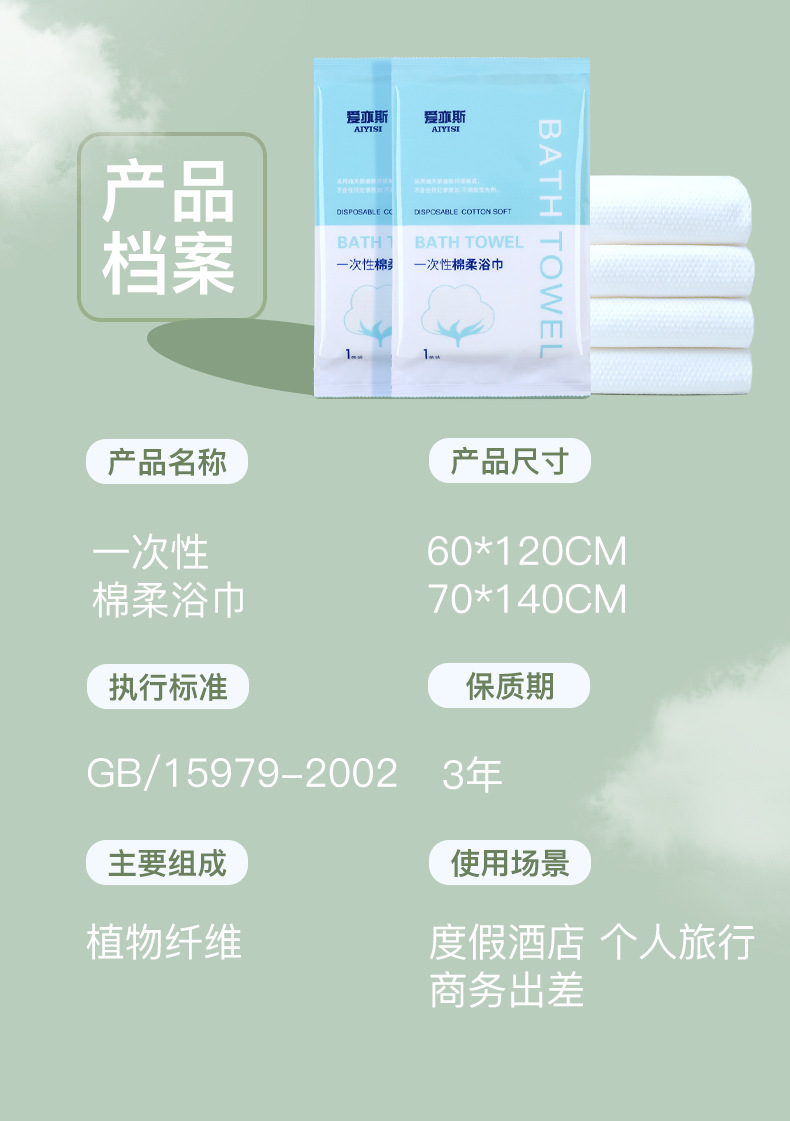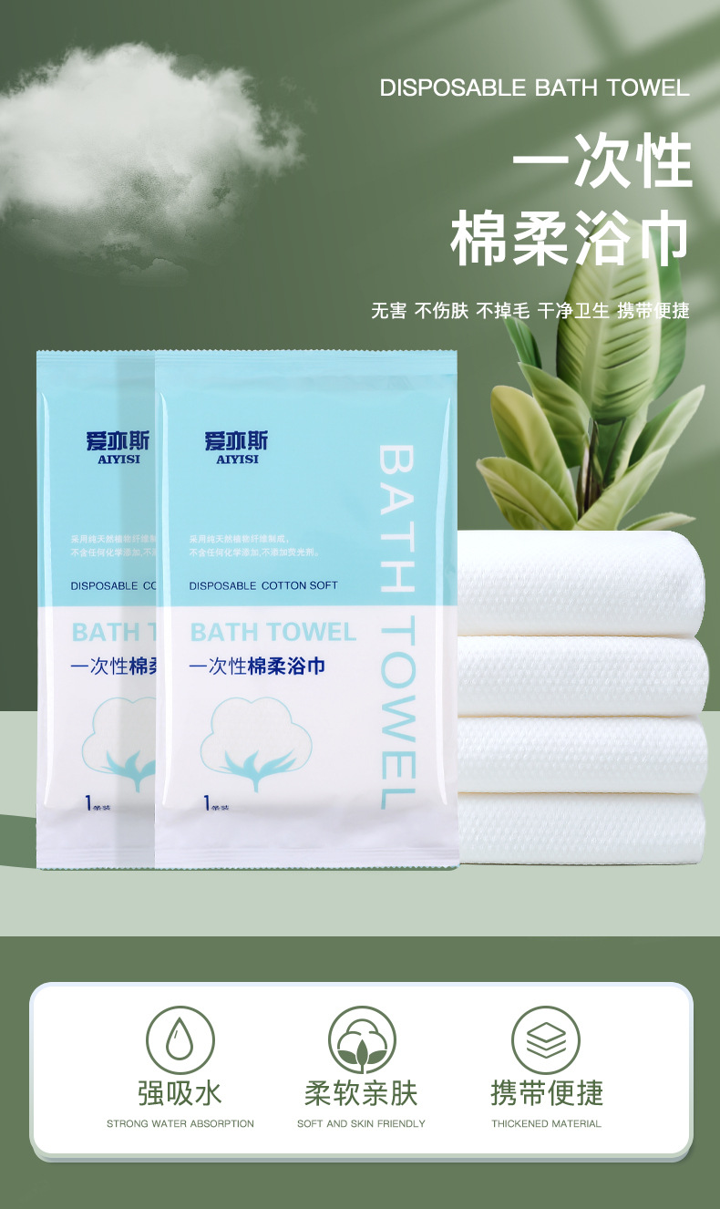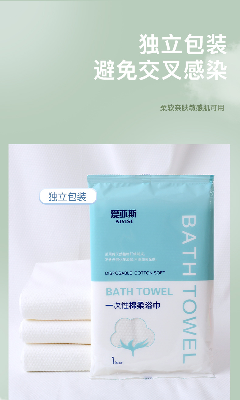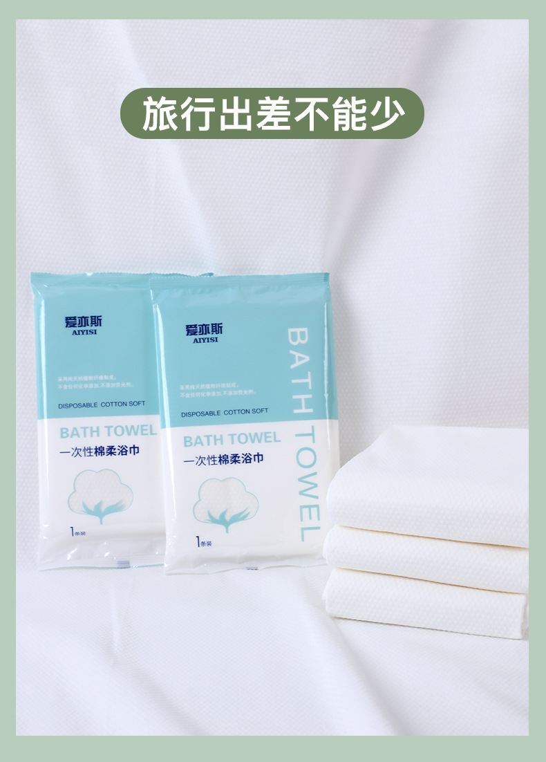 【旅行出差不能少!一次性浴巾毛巾套装】纯棉加厚大号洗澡巾独立包装旅行民宿用品,双面纹路 满足您的不同需求。ry