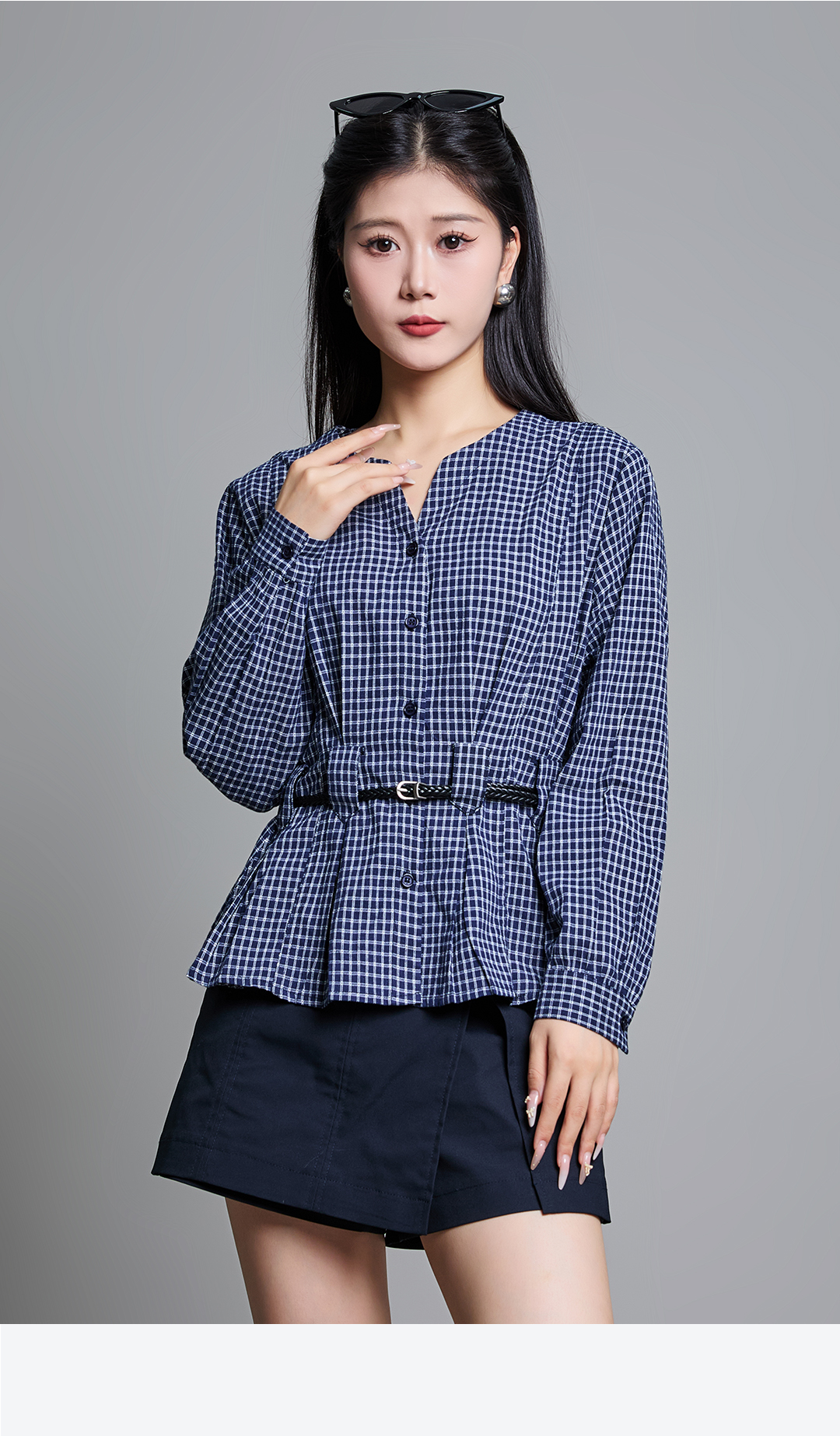 秋上新时尚气质款单排扣格纹百搭修身小衫上衣1253140 商品图2