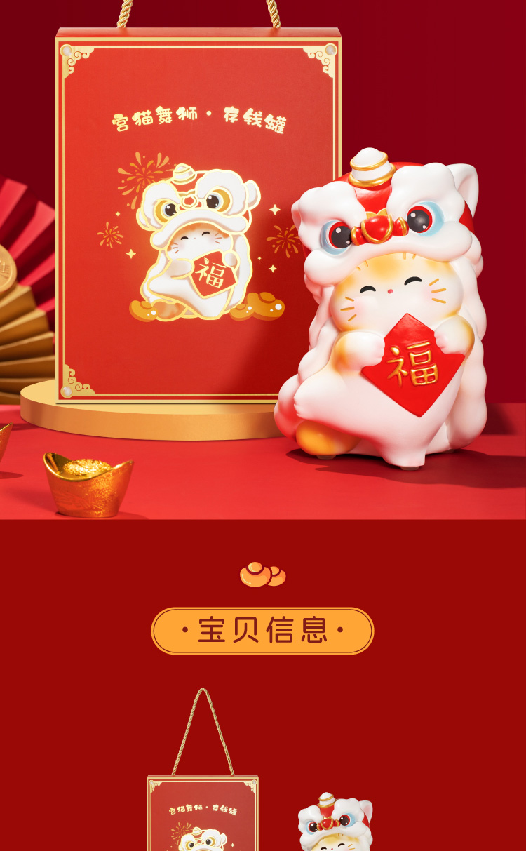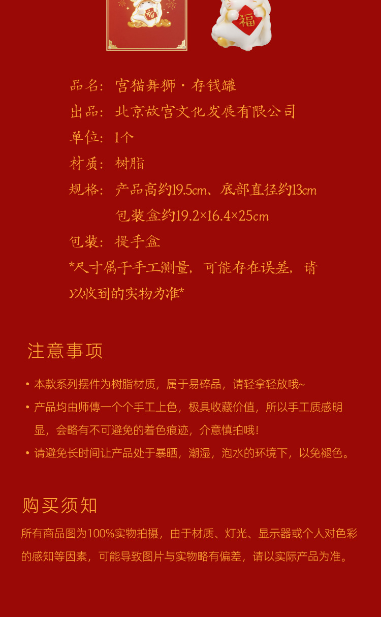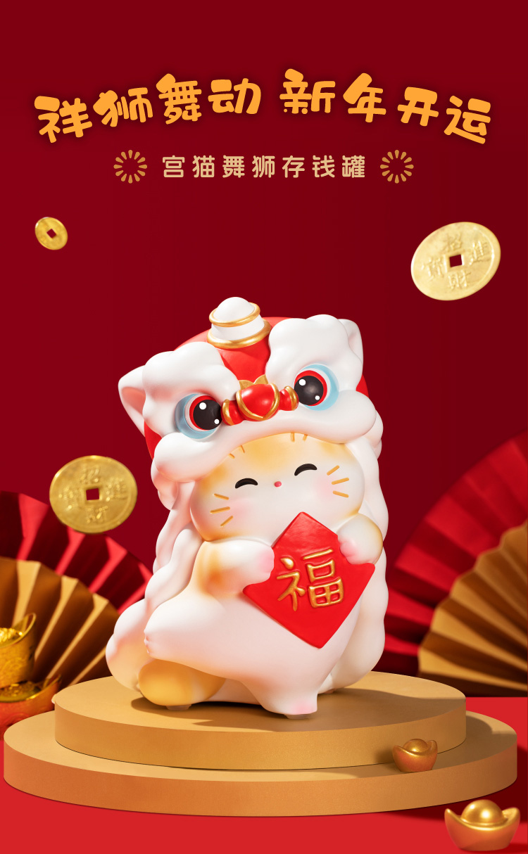 【故宫摆件】故宫猫醒狮存钱罐大容量摆件文创新年生日礼物