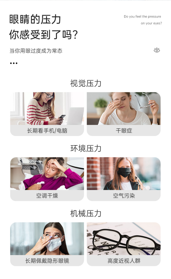 长时间低头做作业,一天十几个小时电脑工作,熬夜追剧打游戏,长时间戴隐形眼镜… 我们的眼睛,每天都在“超负荷”运转!!! 长期过度用眼过度会造成眼睛疲劳、酸涩、模糊、发痒等症状的发生 导致眼睛疲劳,视力下降...