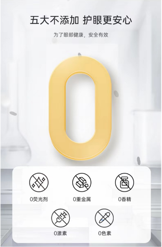 五大不添加,护眼更安心,为了眼部健康,更安全有效哦 不添加荧光剂、重金属、香精、激素、色素,统统都没有 minikuma,为您的眼部安全,保驾护航!