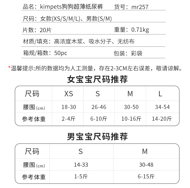 【宠物用品】狗狗猫咪生理裤姨妈巾尿不湿公母狗一次性纸尿裤
