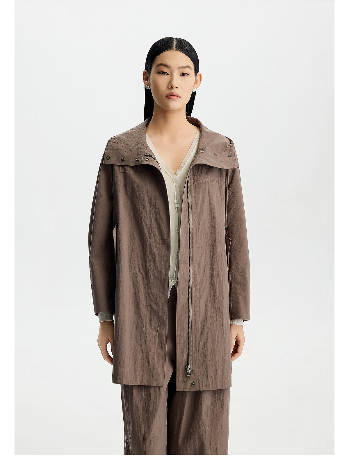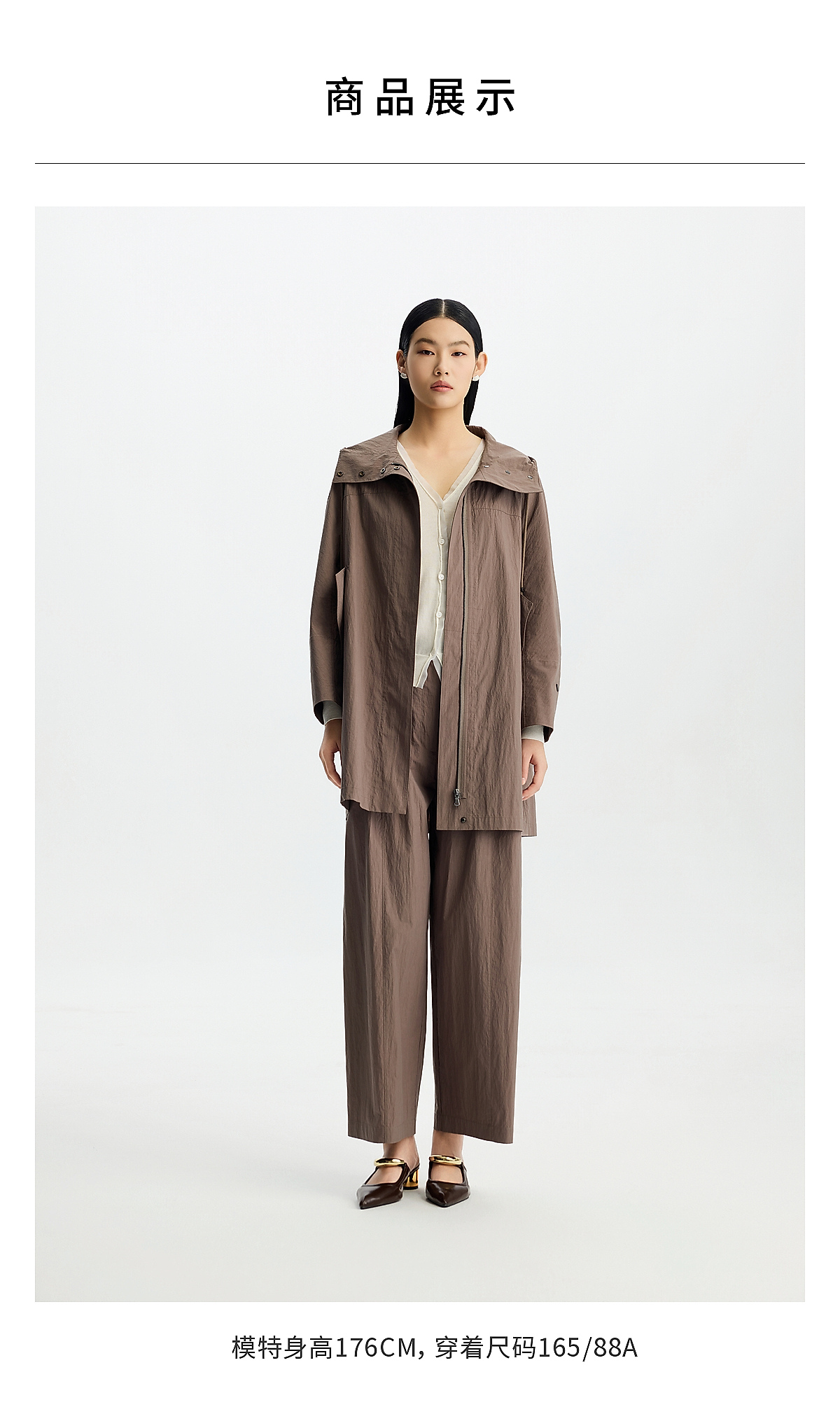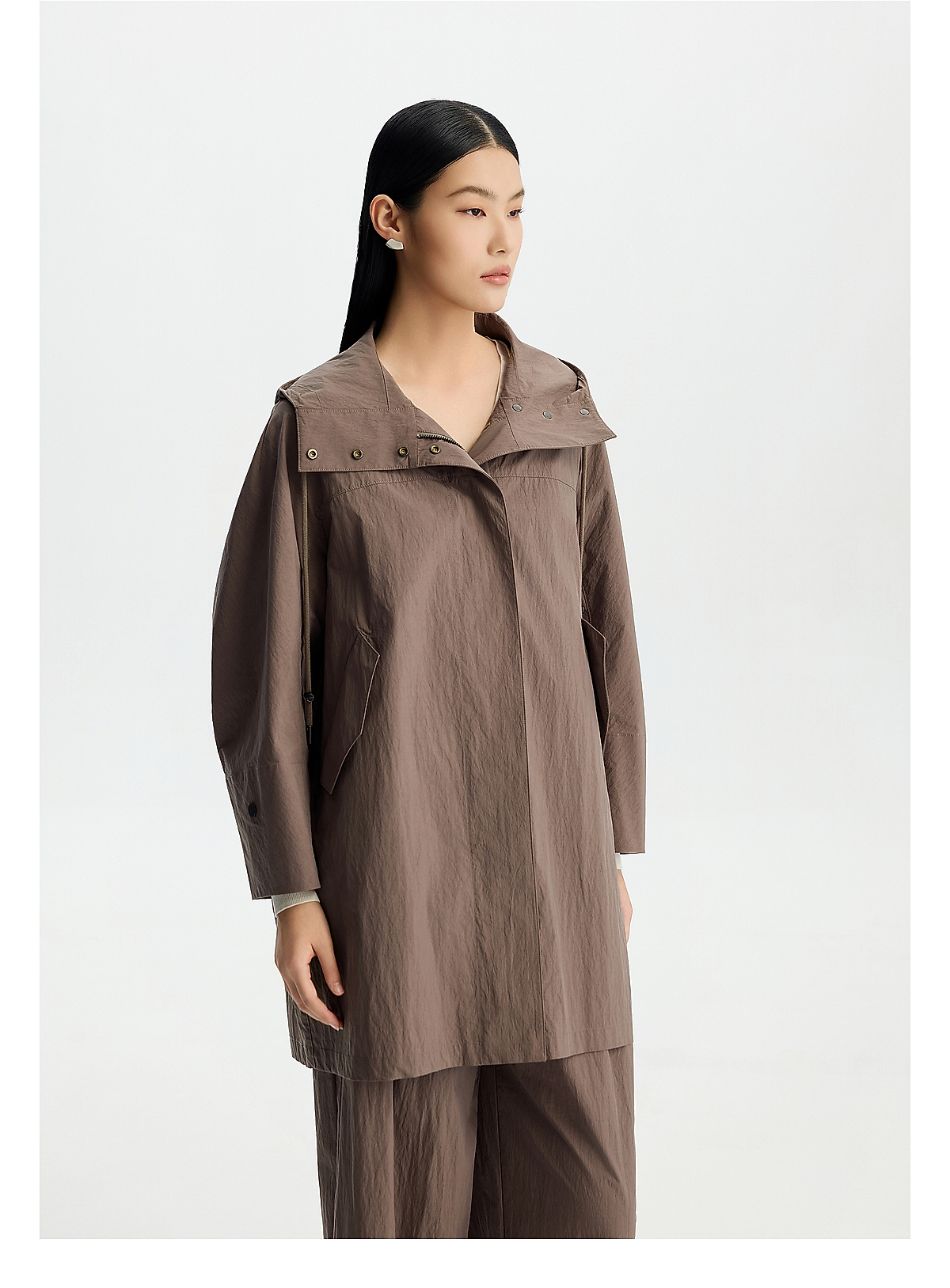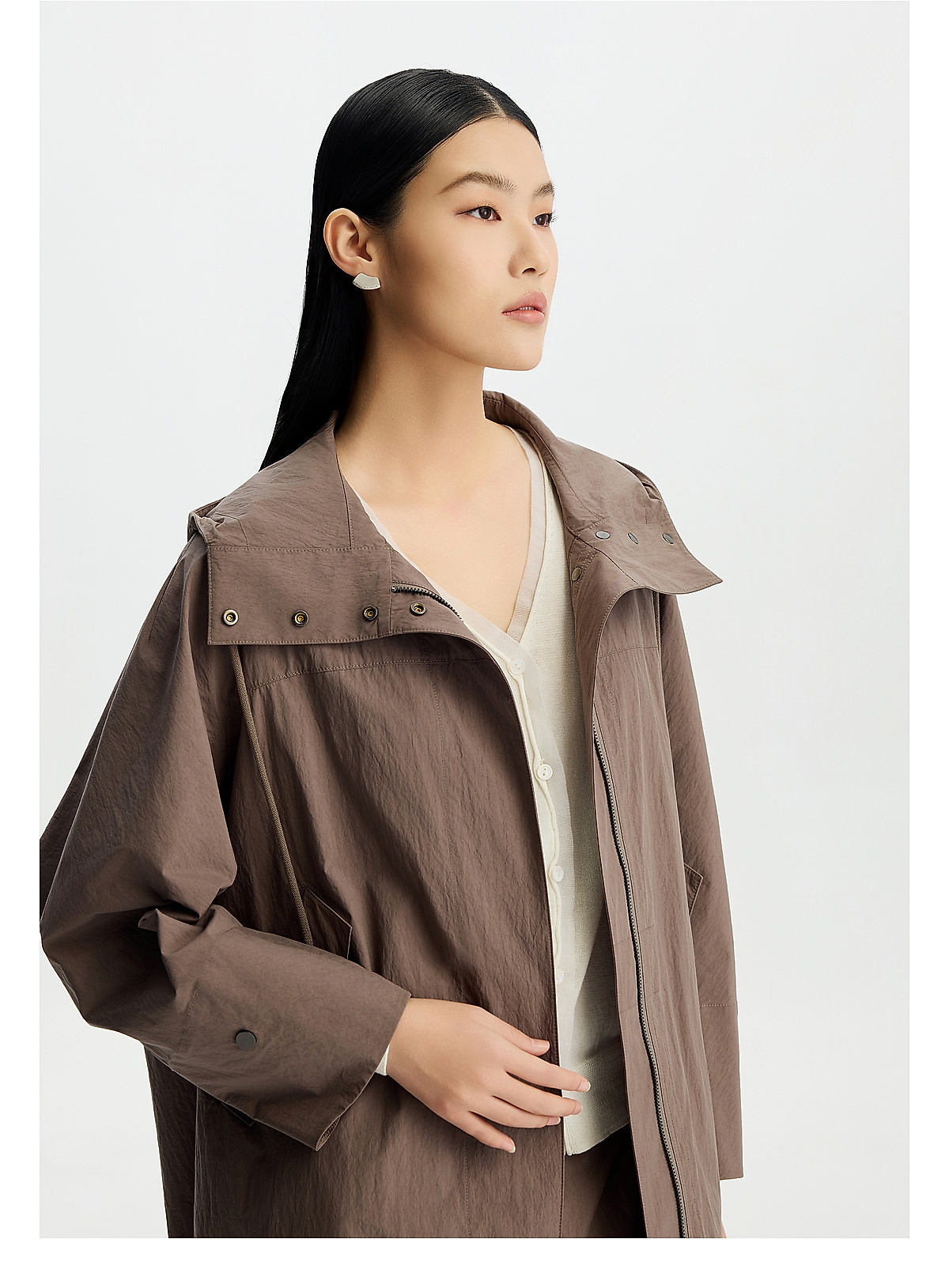 商场同款PURE TOUCH女装26春夏新款连帽风衣棉混纺廓形短外套休闲