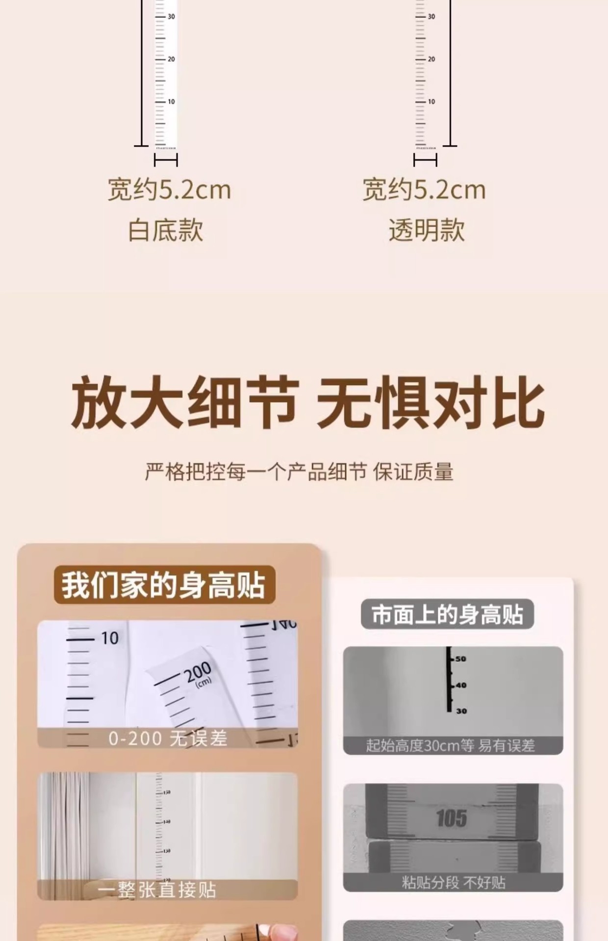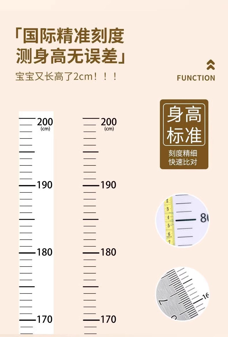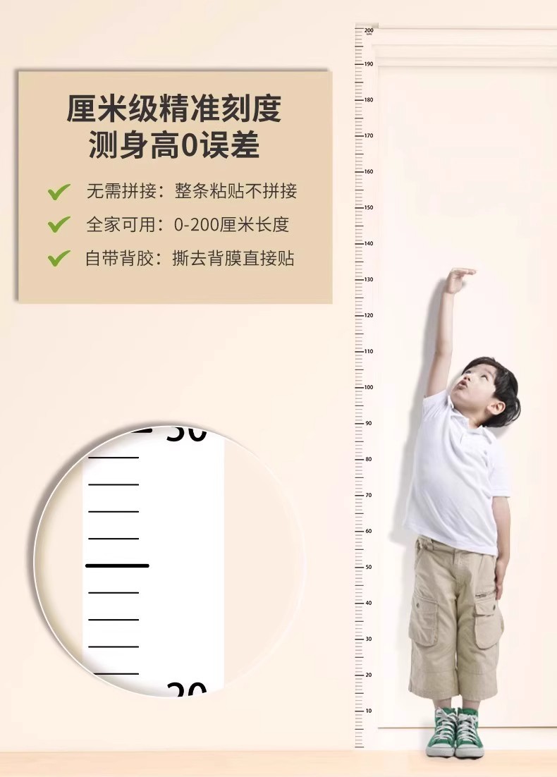 福利!拍2发4!【自带背胶,撕开即贴!】身高贴儿童身高墙贴 学生测量贴纸 家用刻度测量尺 防水客厅透明贴-QB