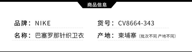 NIKE/耐克 FCB 巴萨连帽套头卫衣CV8664343