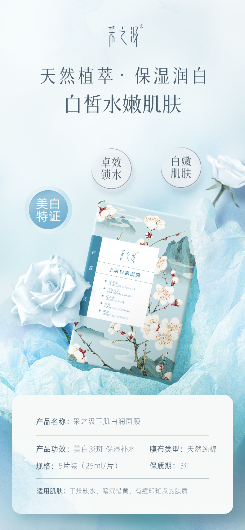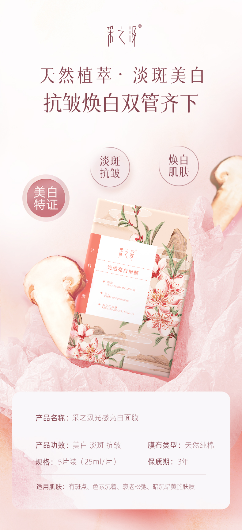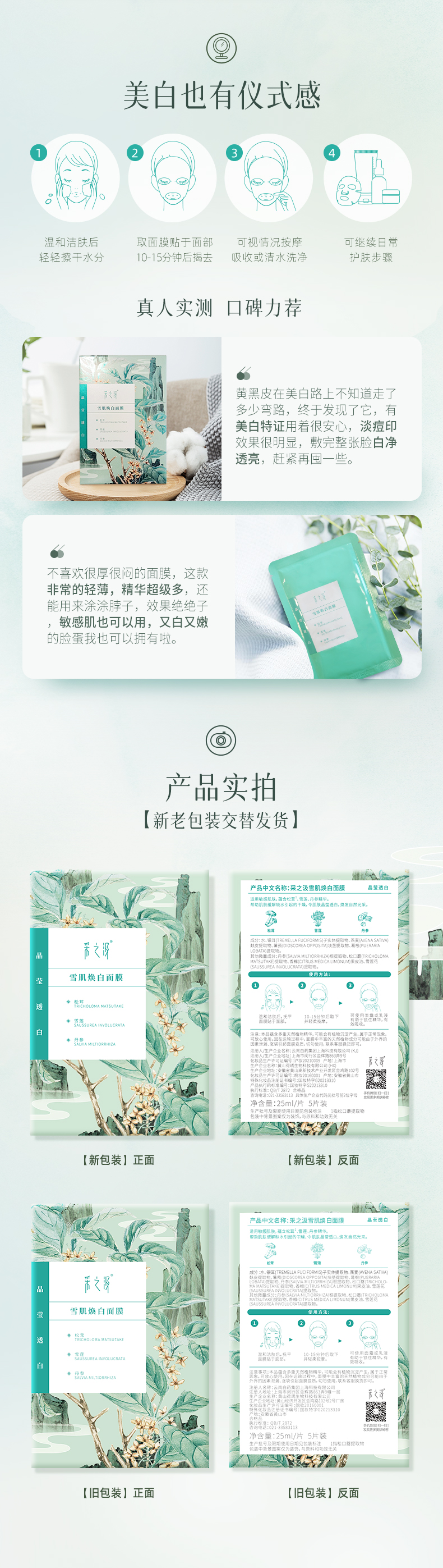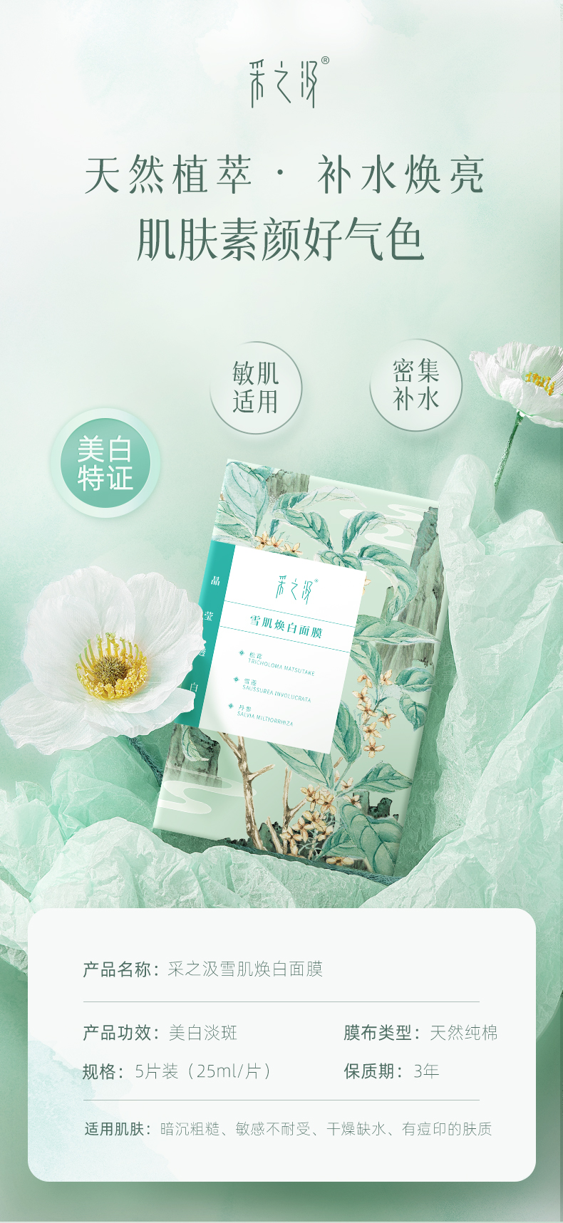 【官方正品】云南白药采之汲雪肌焕白面膜水嫩焕活面膜保湿滋润改善暗沉