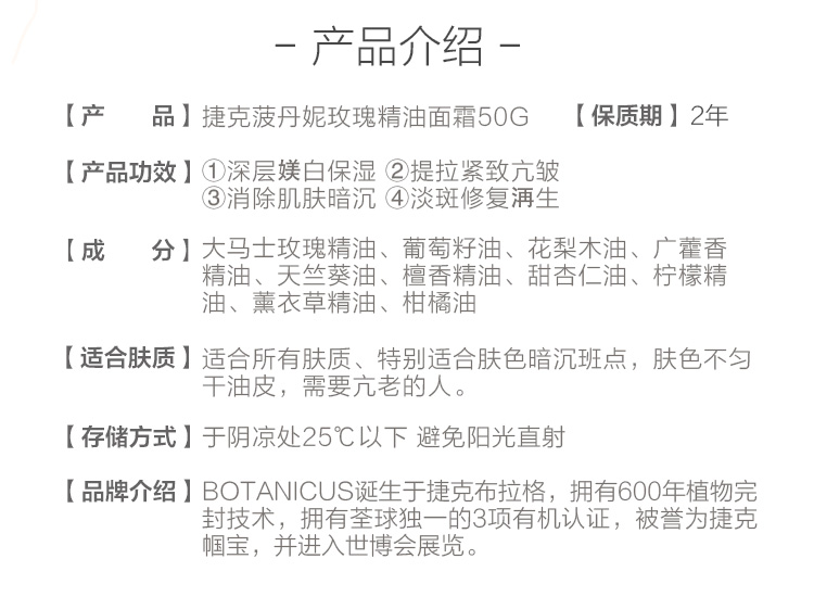 捷克菠丹妮大马士革玫瑰精油面霜养肤靓白50g 日期27年9月