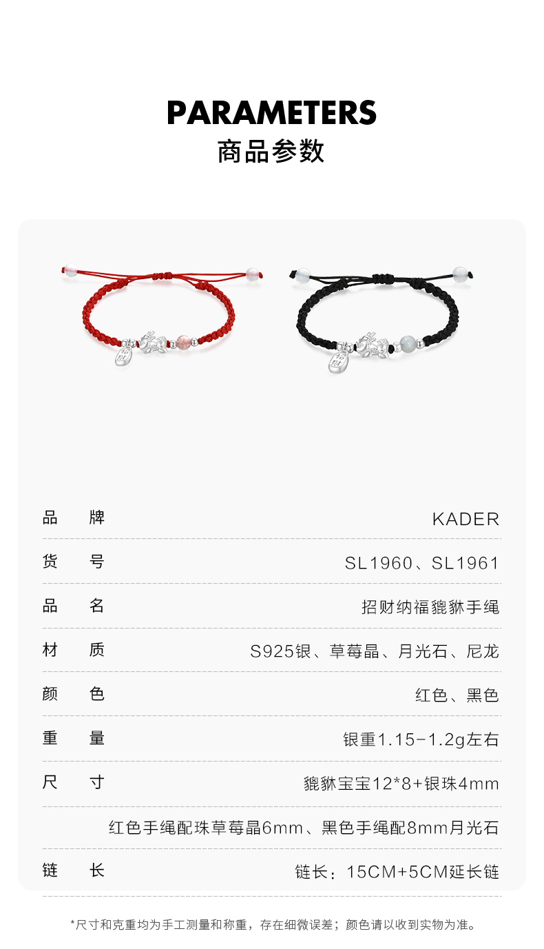 KADER卡蒂罗 招财纳福貔貅手饰龙年吉祥配饰本命年好运新中式复古国风饰品 福运吞金兽萌趣造型 S925银 手链 男女同款情侣款 礼物