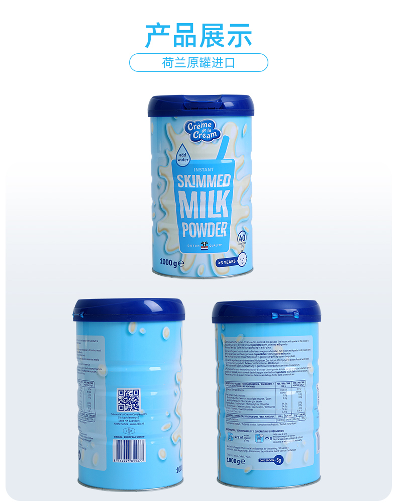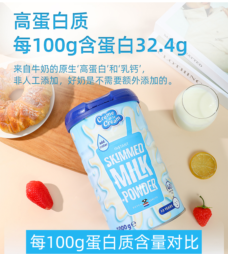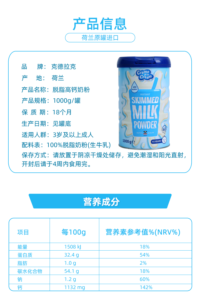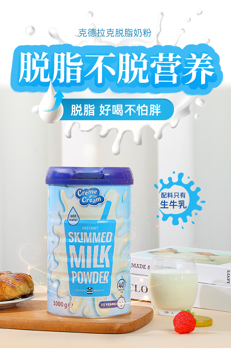 【中欧班列精选】荷兰原装进口克德拉克脱脂奶粉1000g/桶