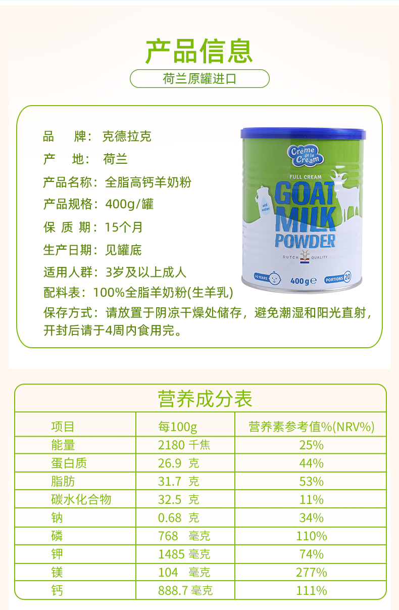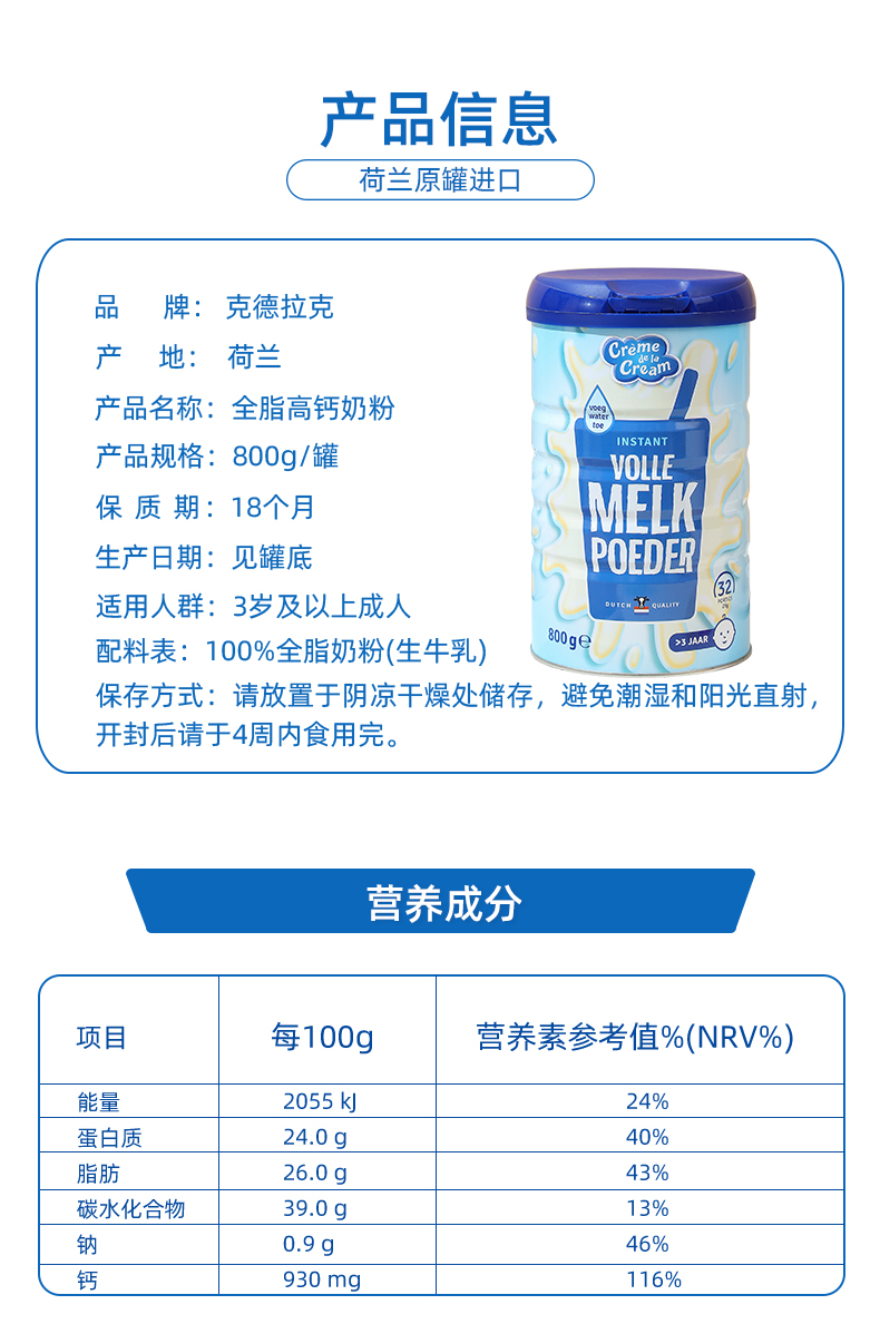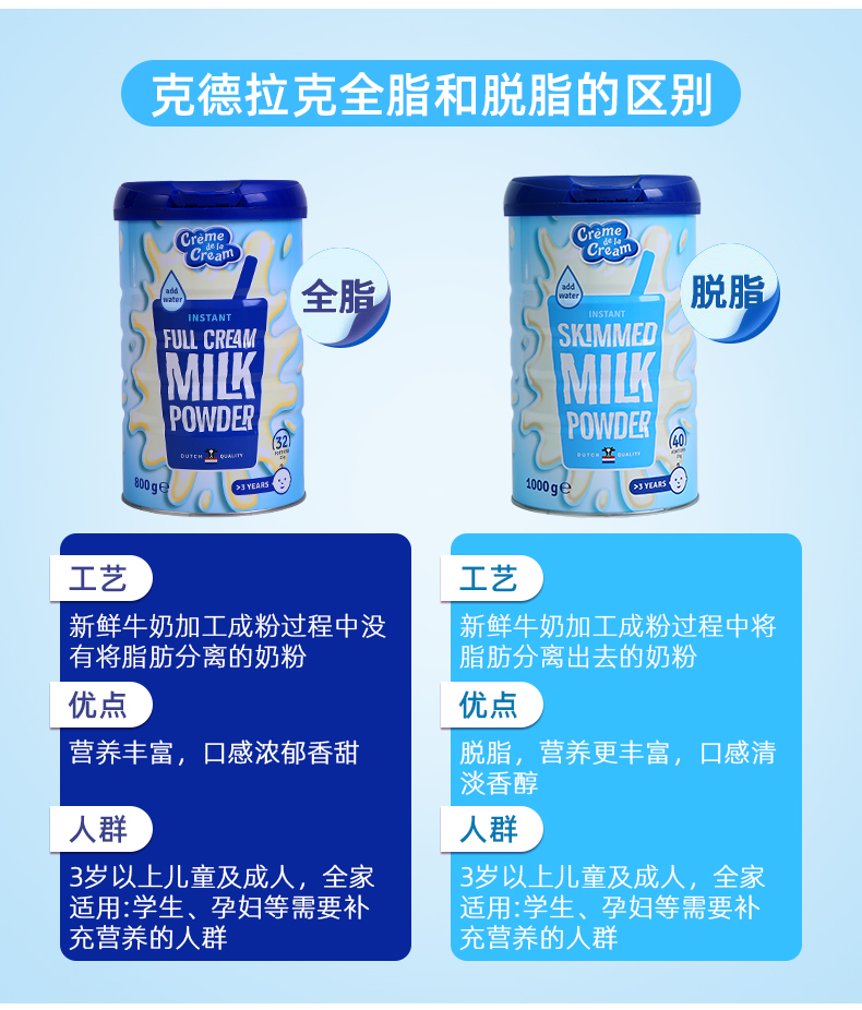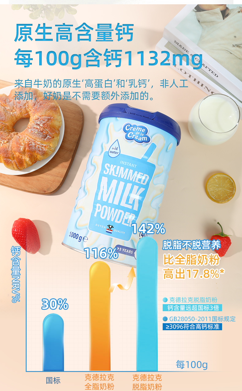 【中欧班列精选】荷兰原装进口克德拉克脱脂奶粉1000g/桶