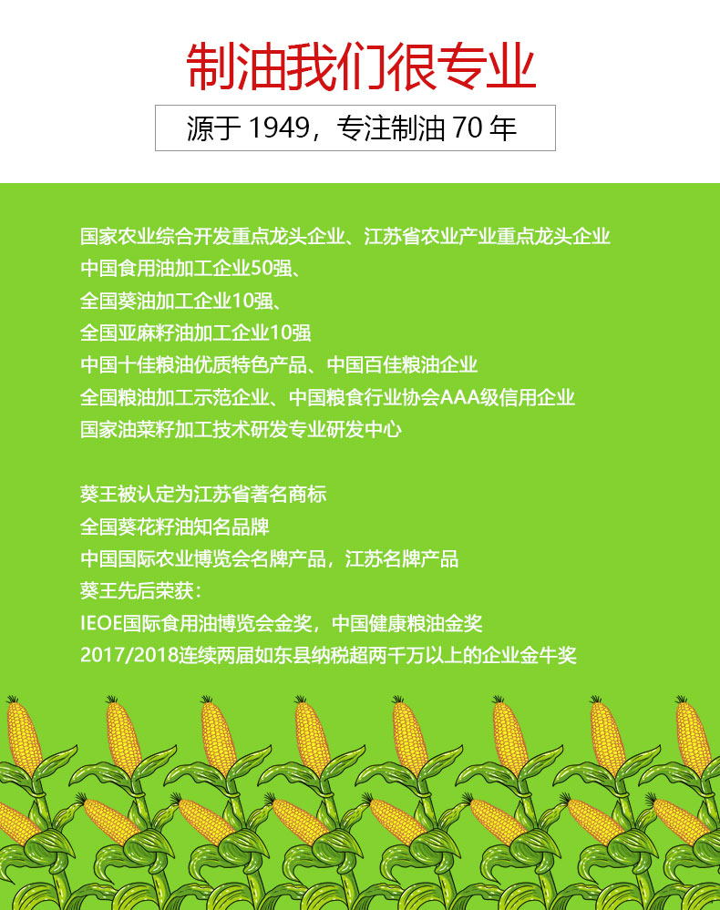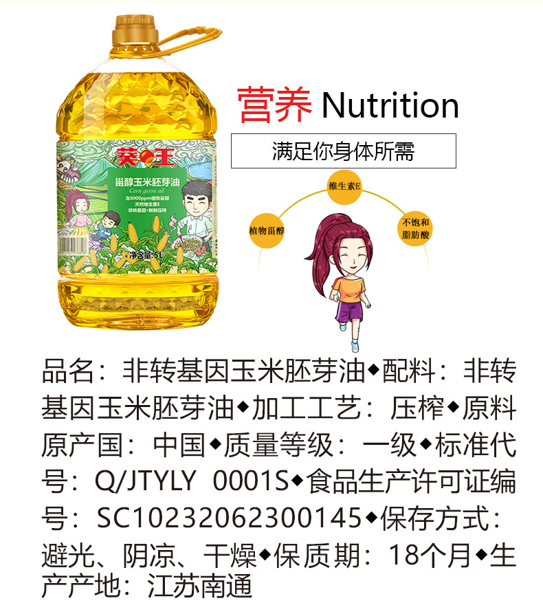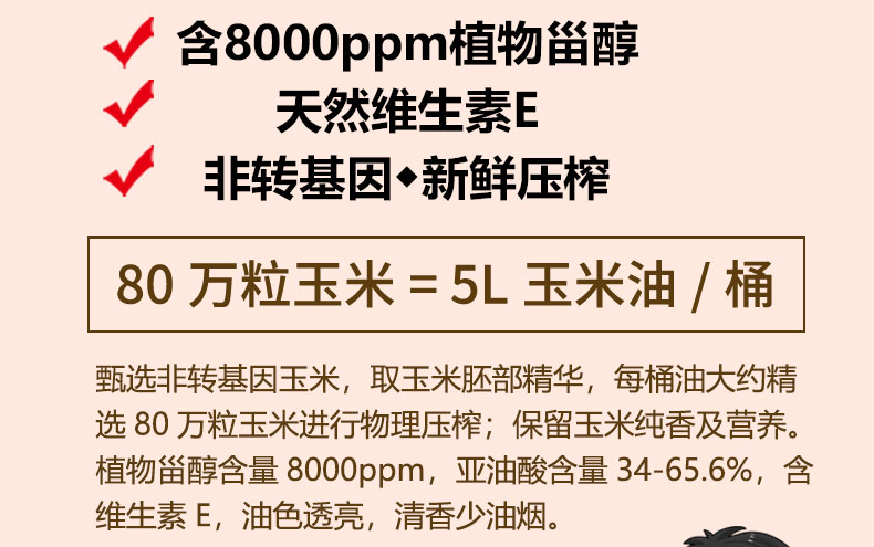 【中国农垦】葵王 甾醇玉米胚芽油5L 家庭桶装食用植物油