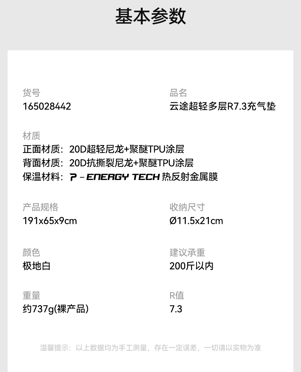 【云途】伯希和户外充气垫R7.3轻量化徒步地垫帐篷加厚睡垫防潮垫