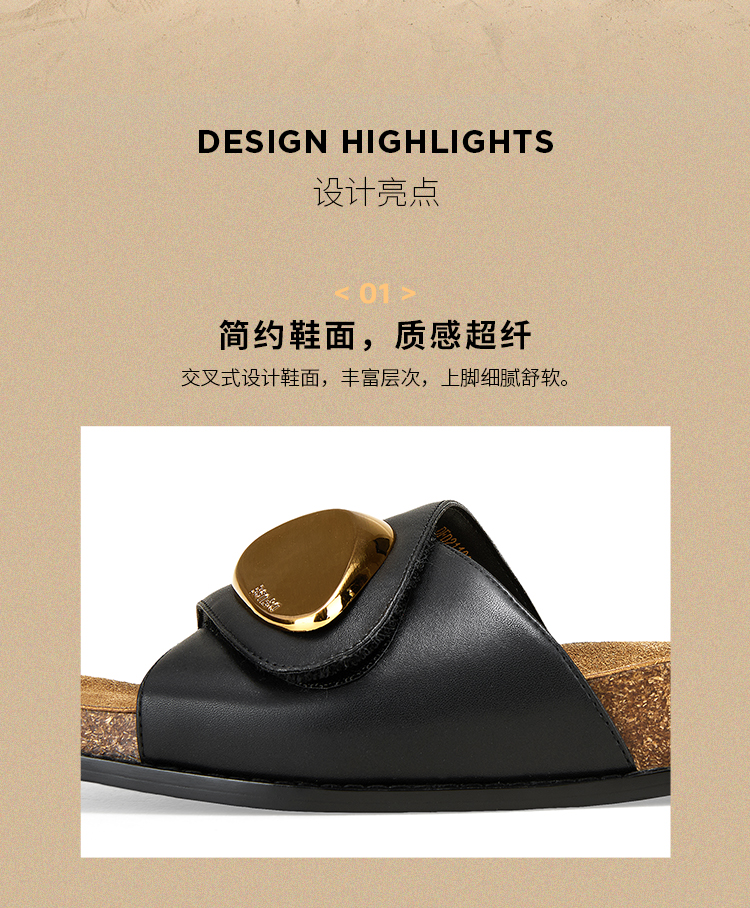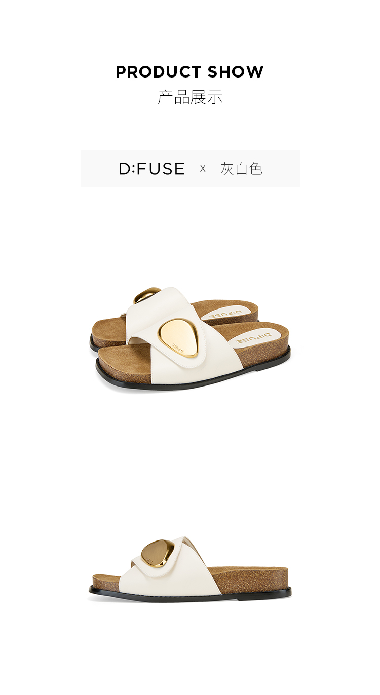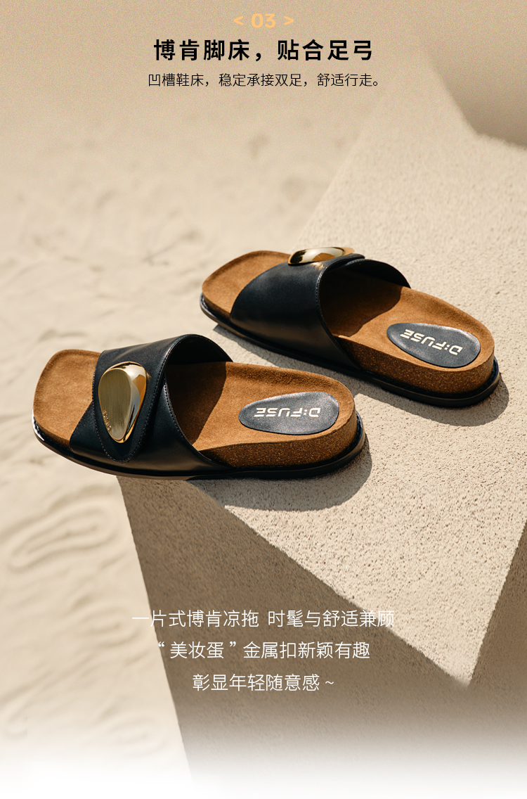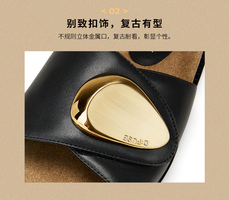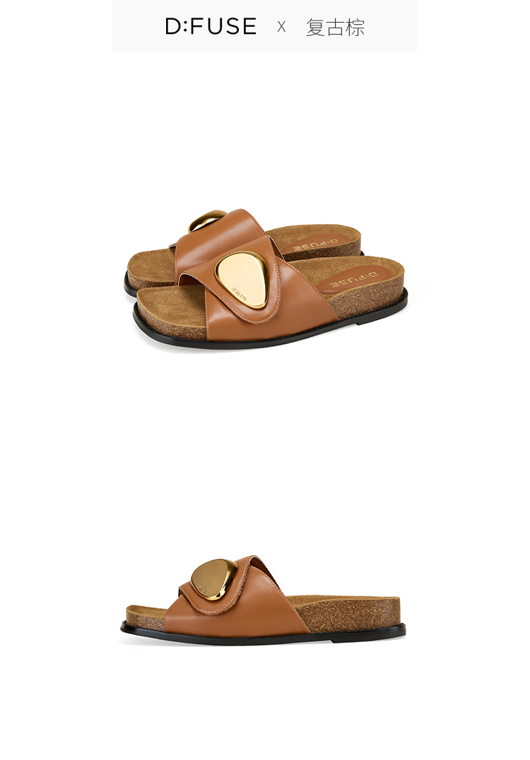Dfuse迪芙斯2025夏季新款复古拖鞋金属扣一字带勃肯鞋凉拖女鞋DFD2110056