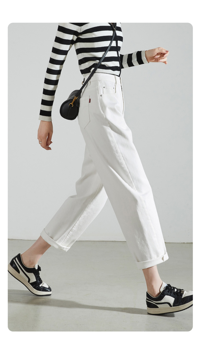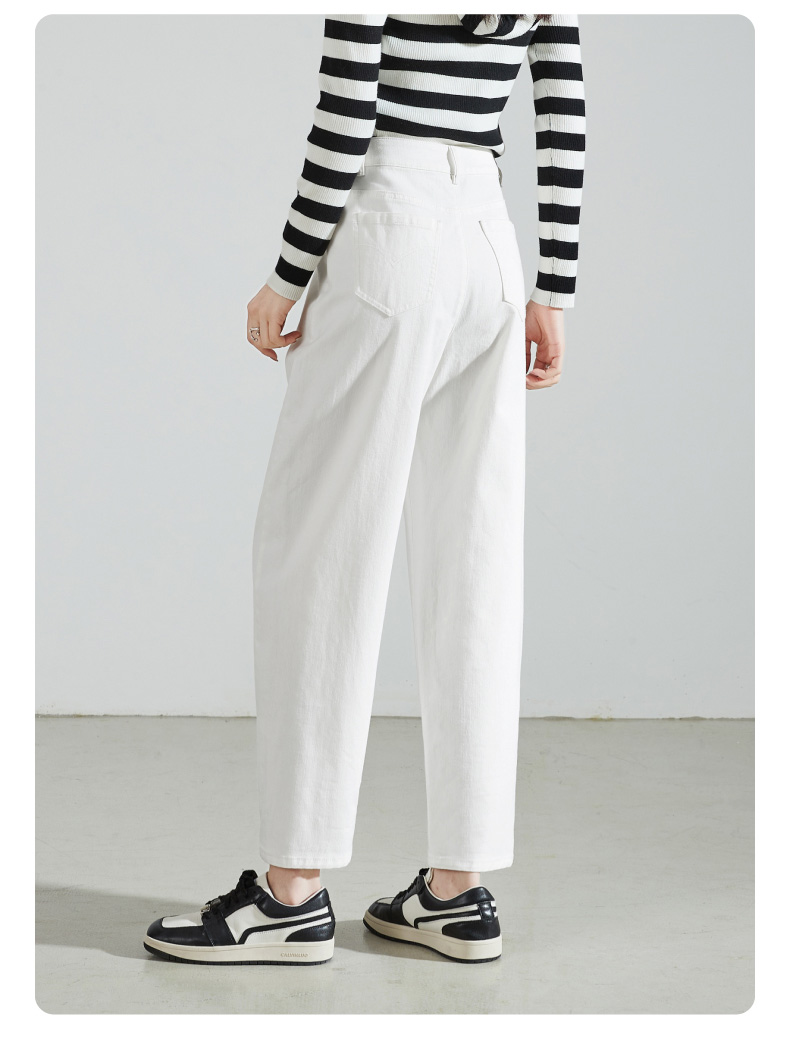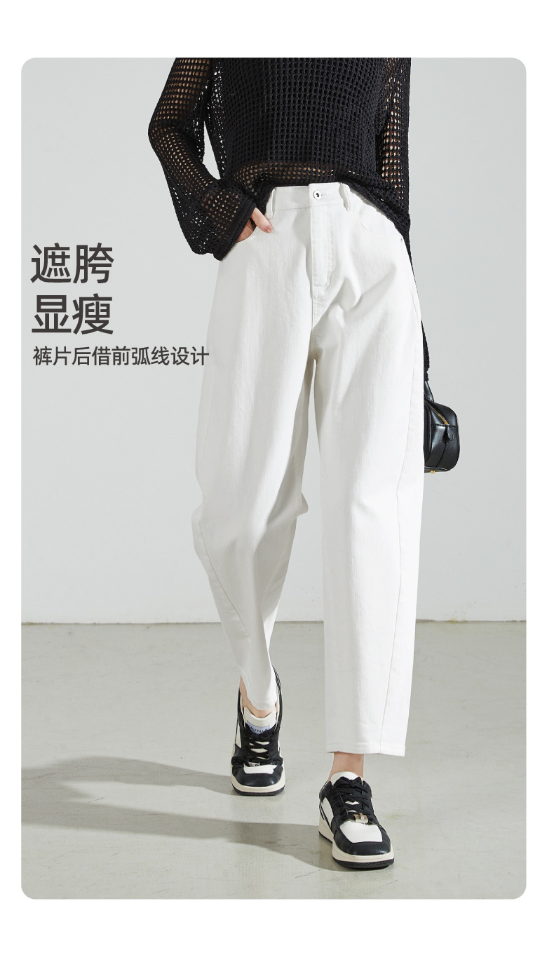 【白色-三防-哈伦牛仔】逸阳宽松九分显瘦香蕉休闲裤子0879