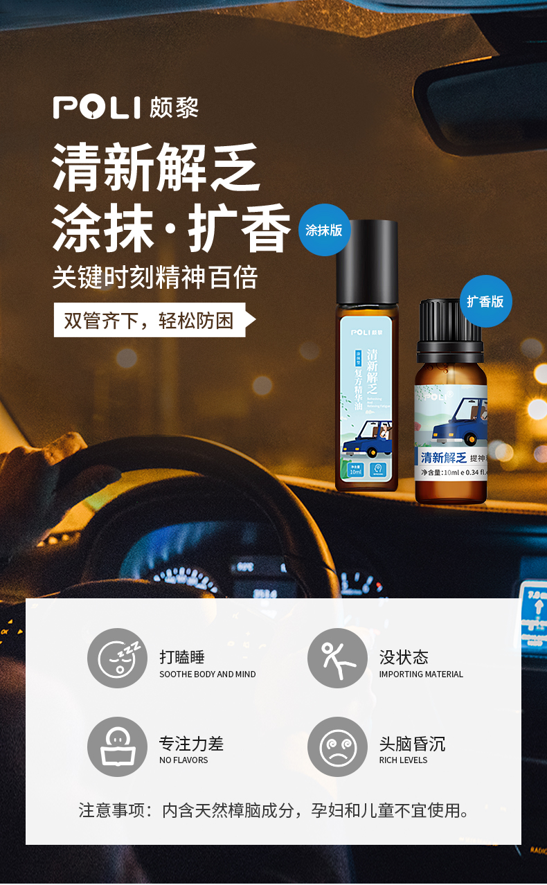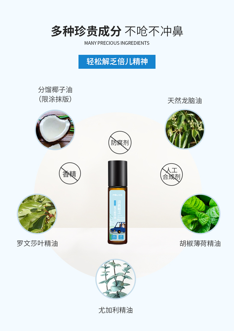 清新解乏提神醒脑复方精油原料 涂抹版香薰复方精油 颇黎10ml滚珠瓶涂