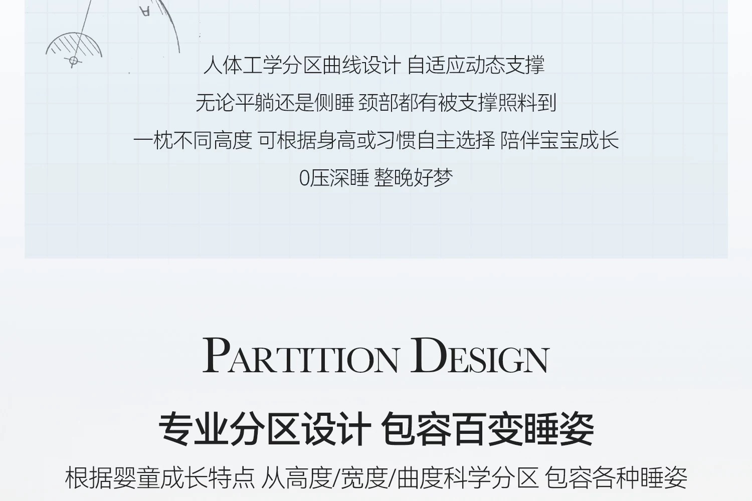 Domiamia 儿童枕 婴儿枕头1-3-6岁宝宝专用护脊四季通用分区护脊枕