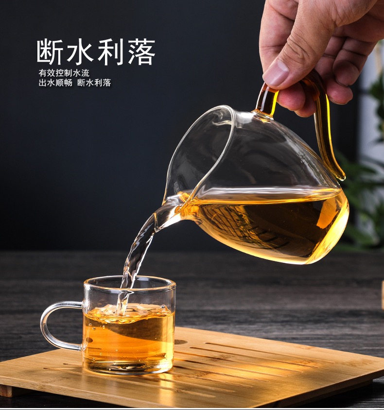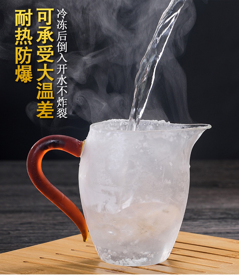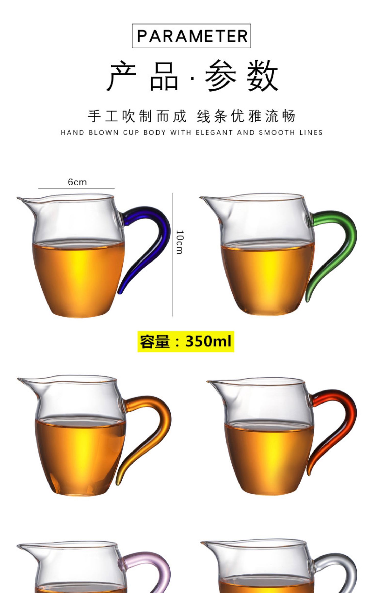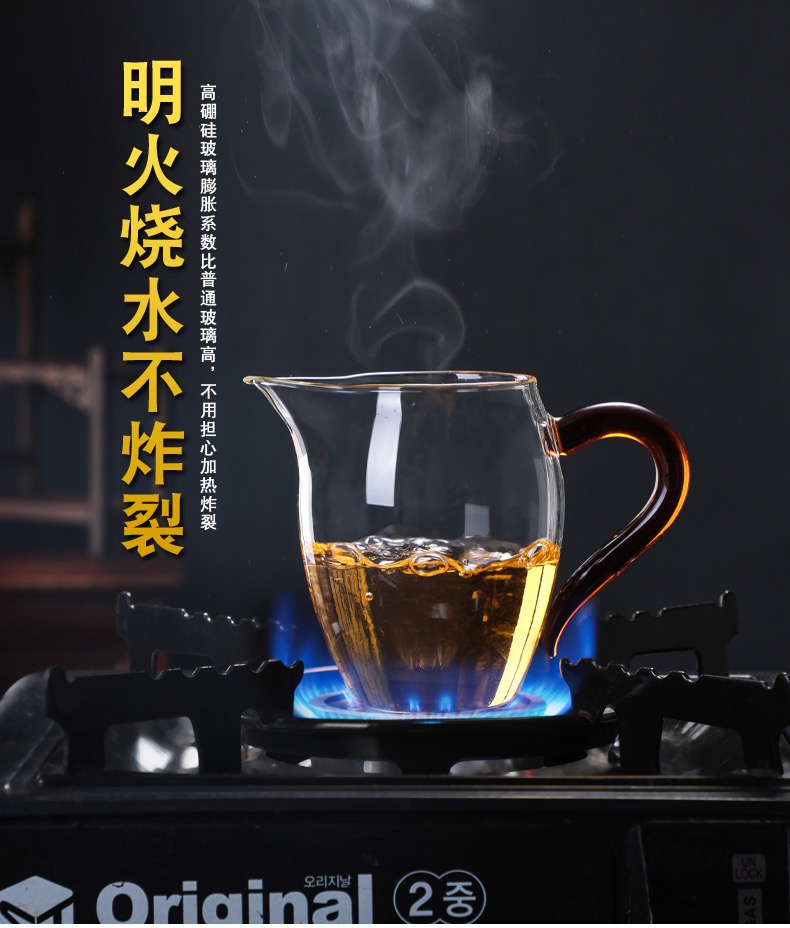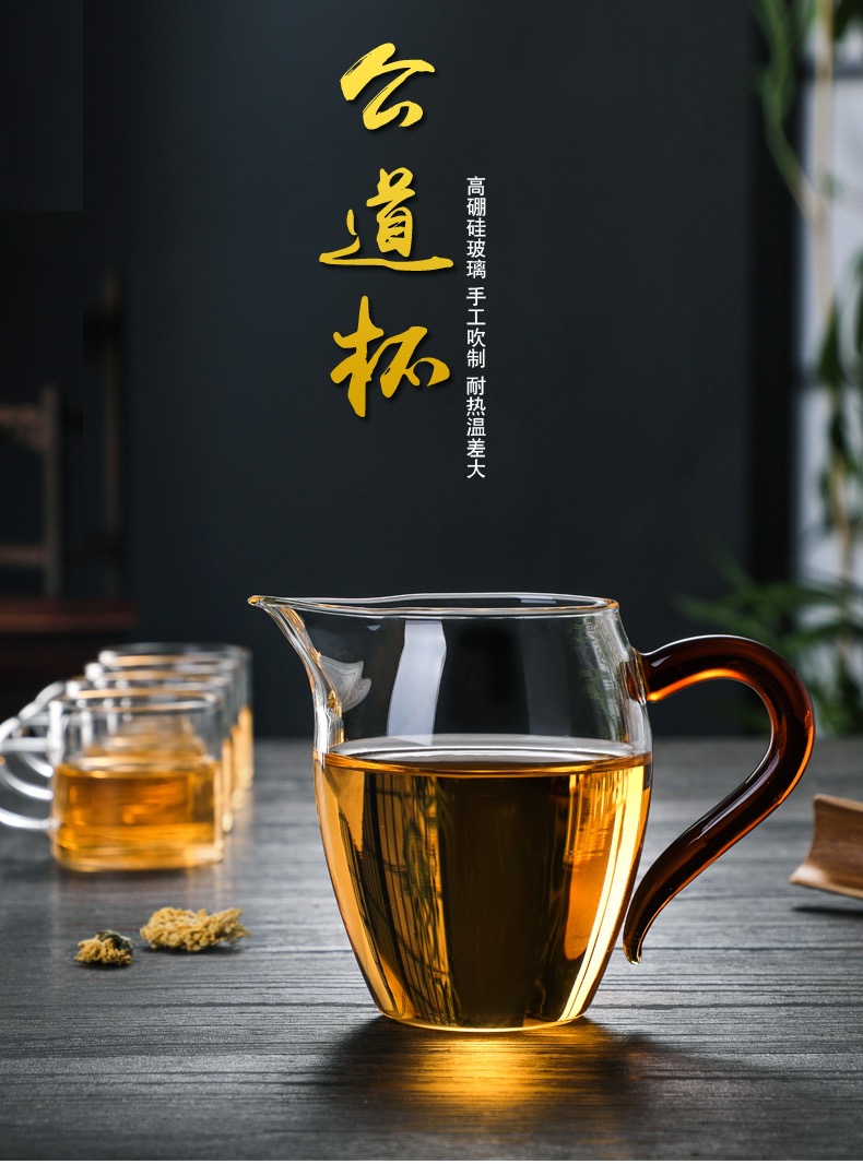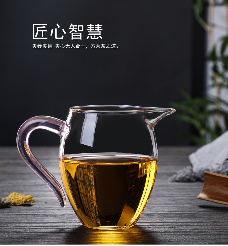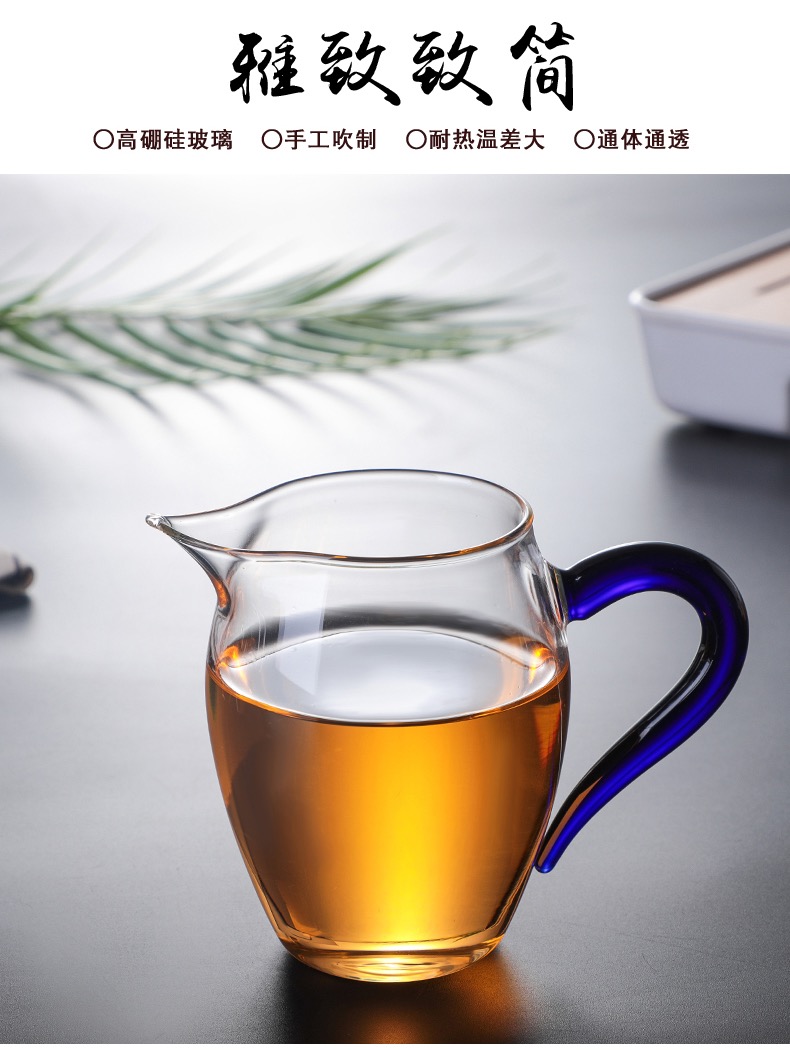 创意加厚公道杯玻璃彩把日式分茶器耐高温茶道配 件耐热透明高档