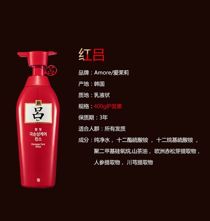 【精品推荐】韩国 Ryo/吕 红吕含光耀护损伤修护护发素400mlJPY带授权招加盟代理