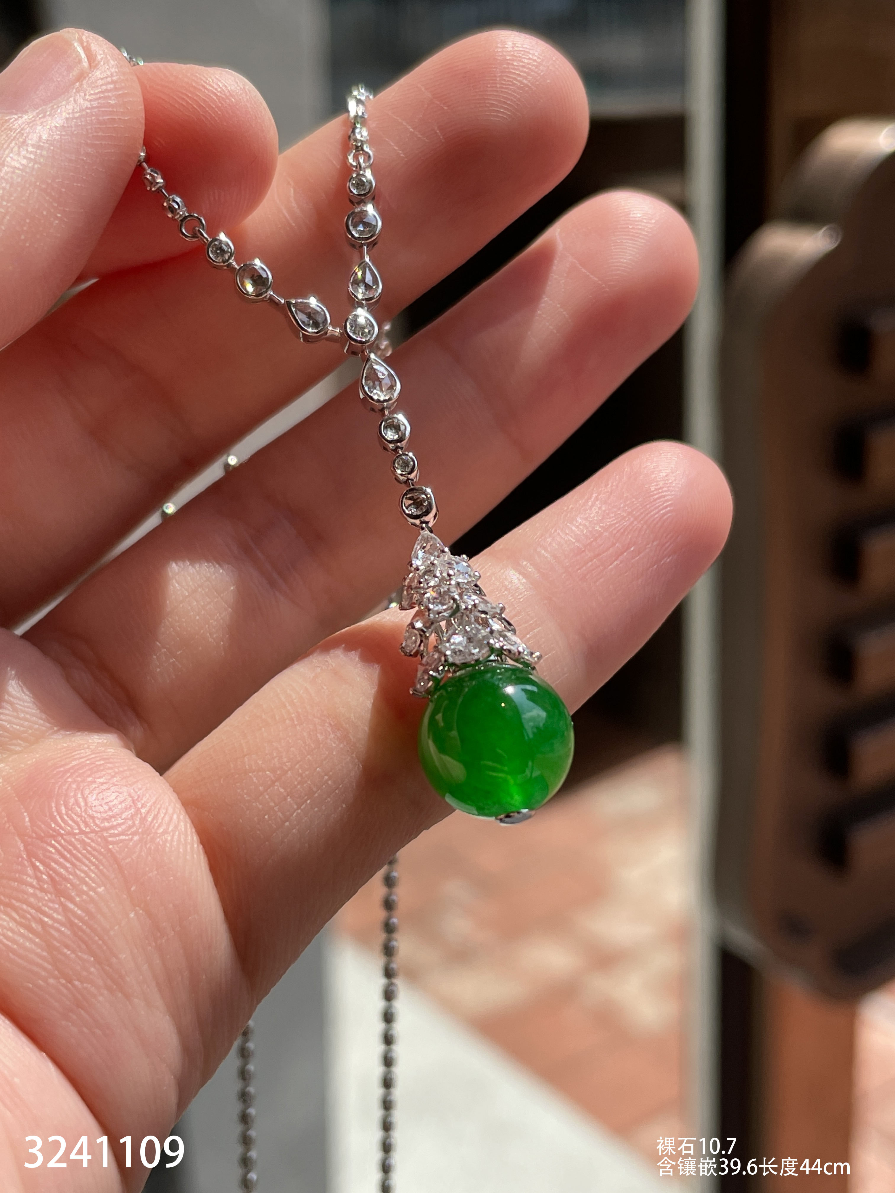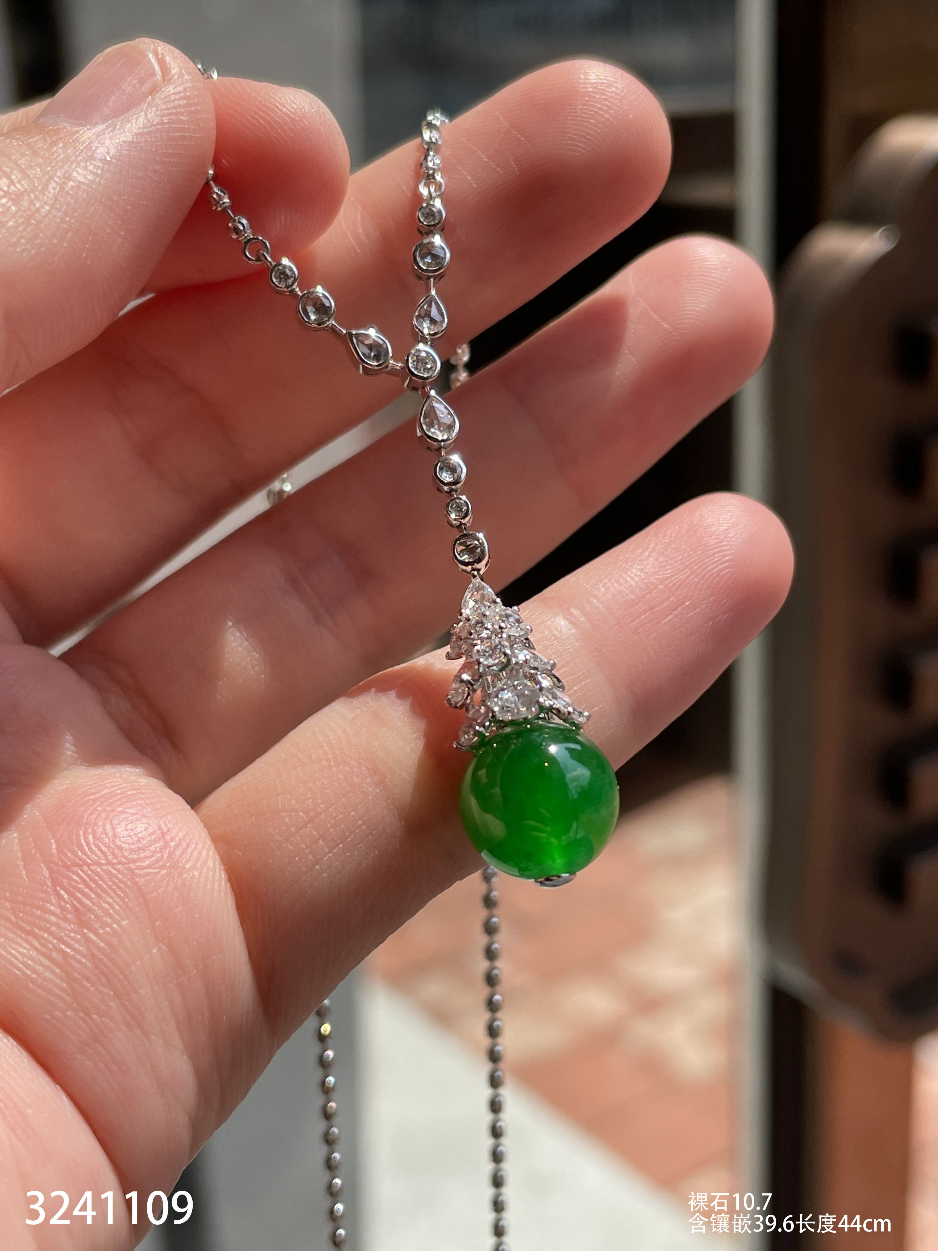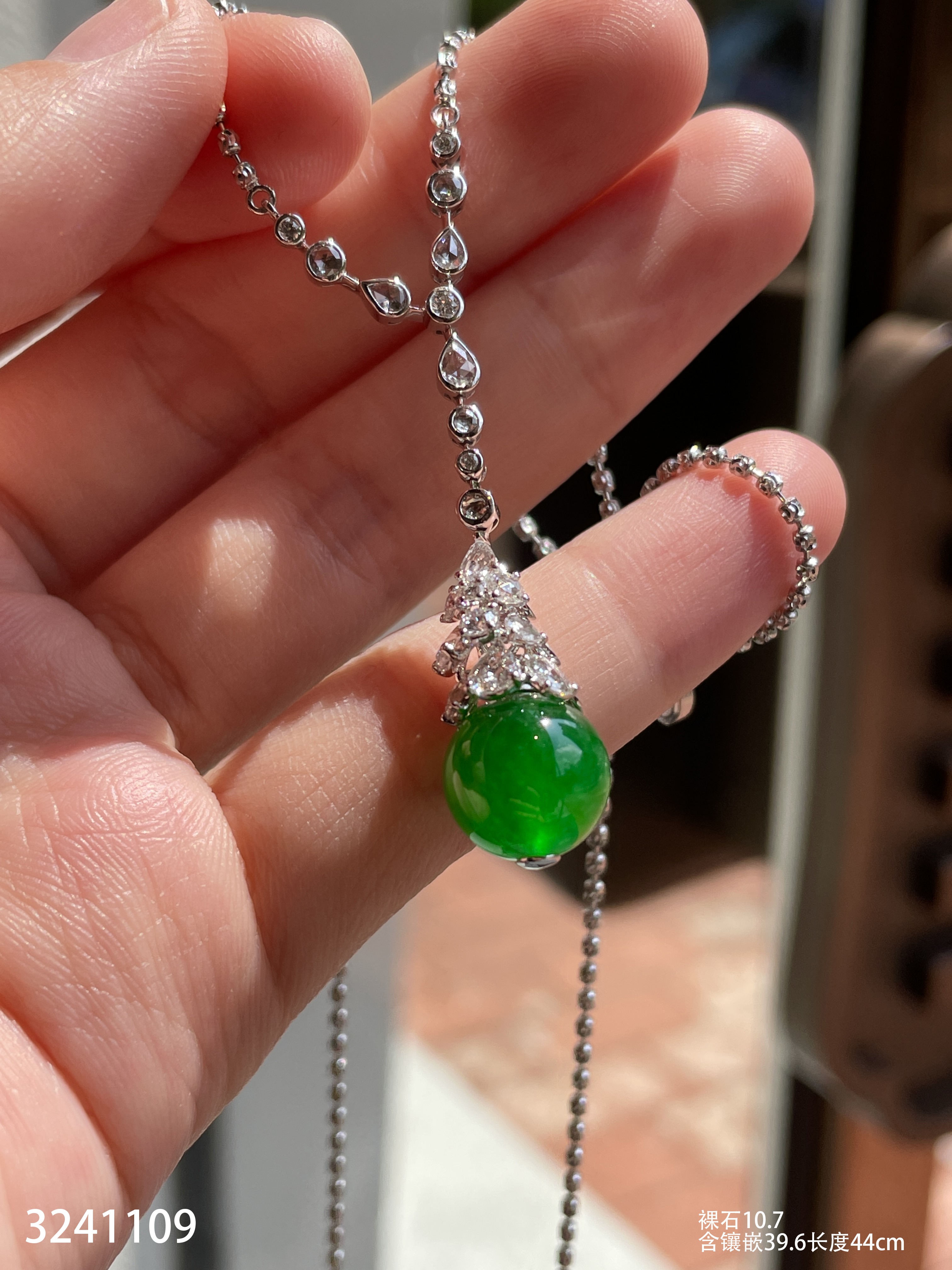 高冰艳绿珠子吊坠【3241109】具体价格微信咨询