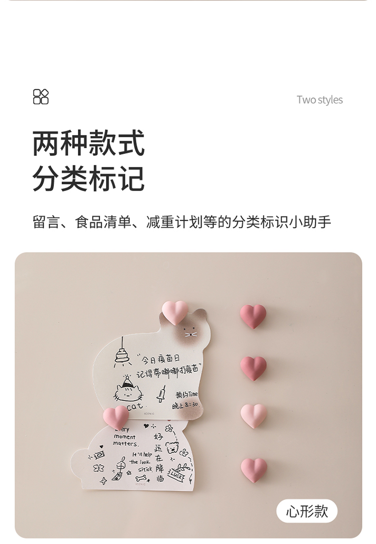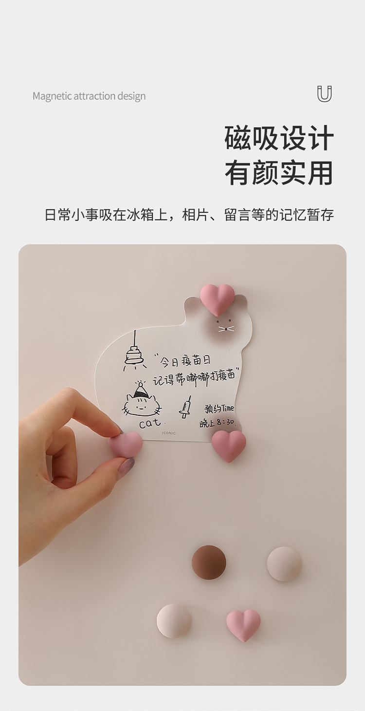 FaSoLa创意ins风冰箱贴卡通纯色爱心磁吸贴可爱装饰摆件磁性贴