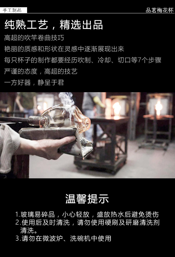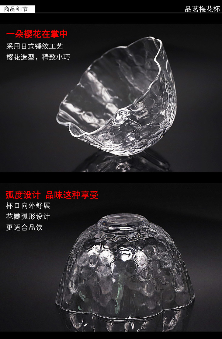 云中居 手工锤纹玻璃品茗杯 梅花杯