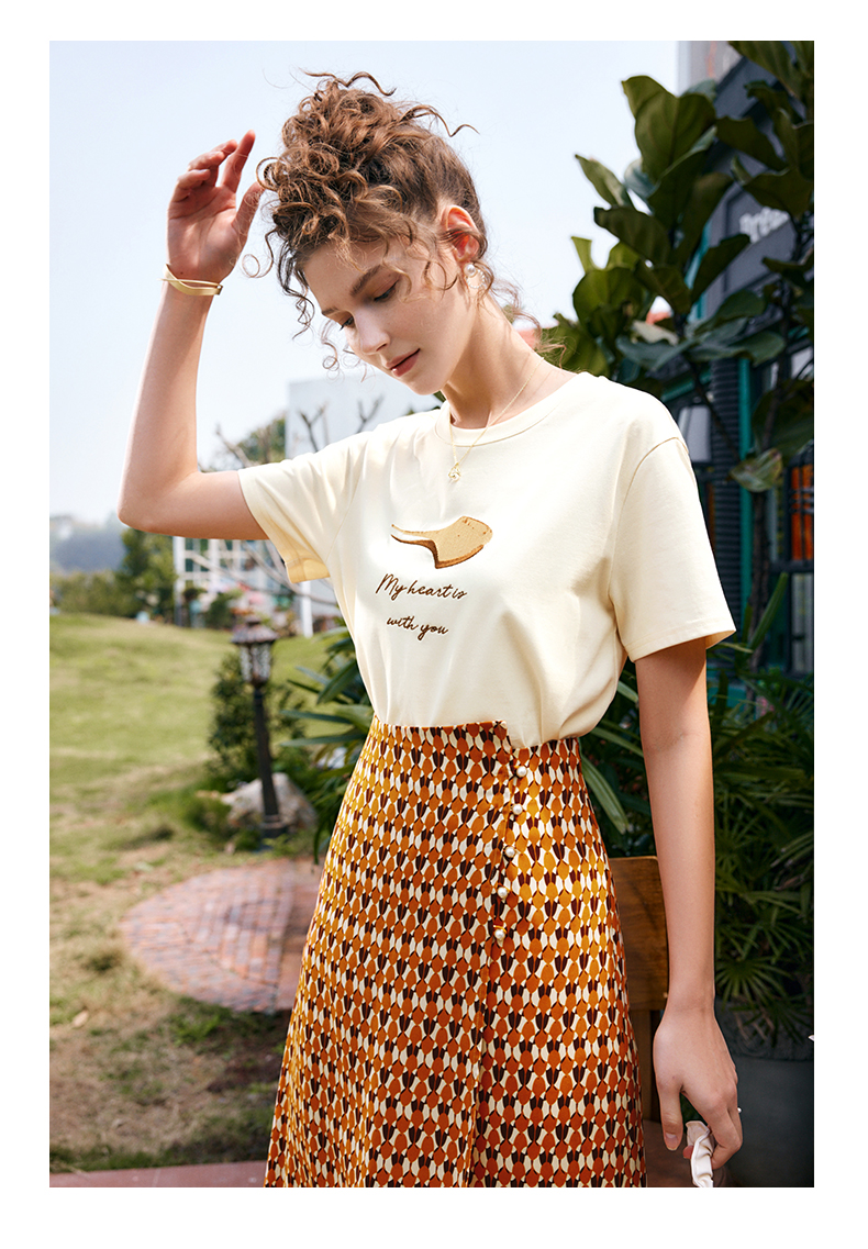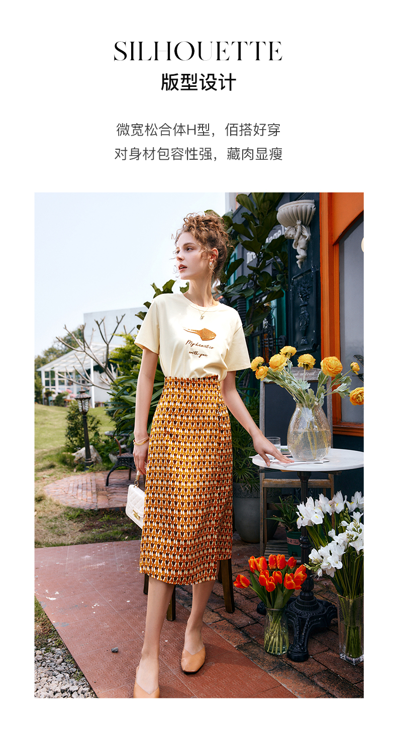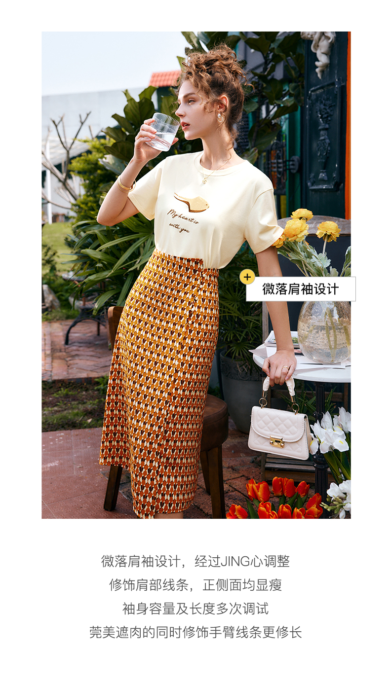 OLrain法式高级穿搭短袖t恤女夏季2022新款宽松时尚印花圆领上衣