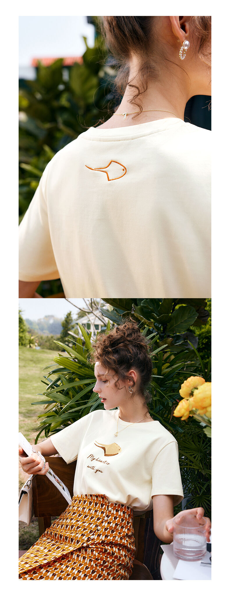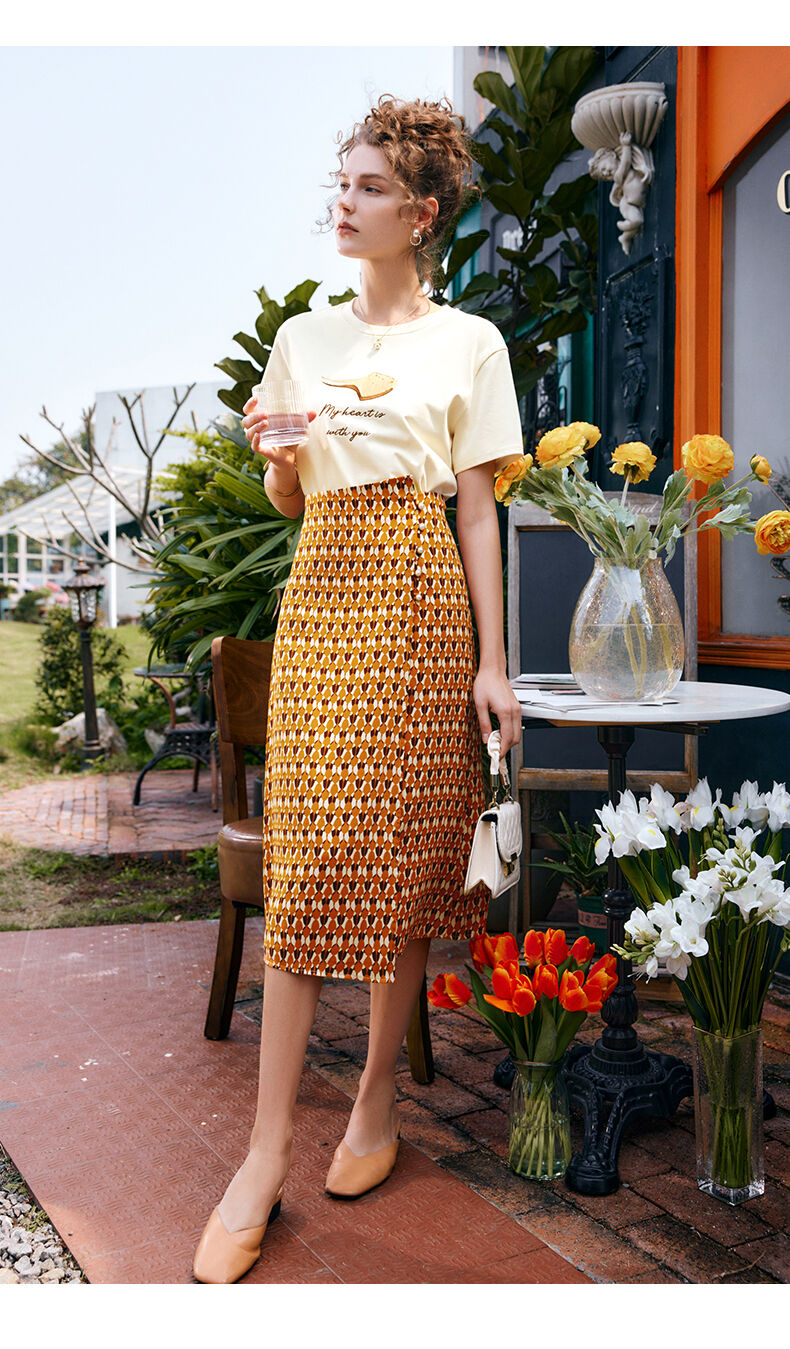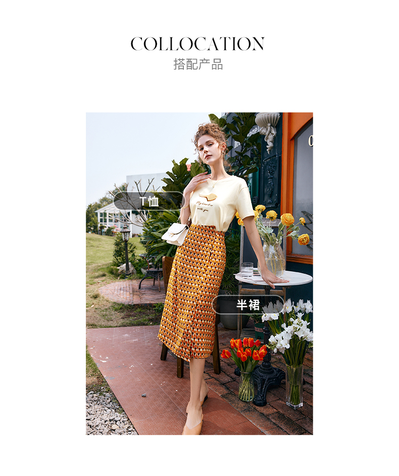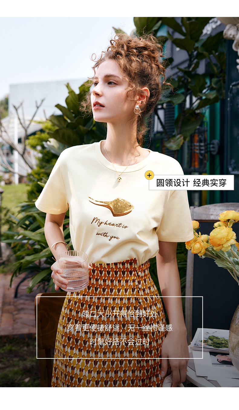 OLrain法式高级穿搭短袖t恤女夏季2022新款宽松时尚印花圆领上衣