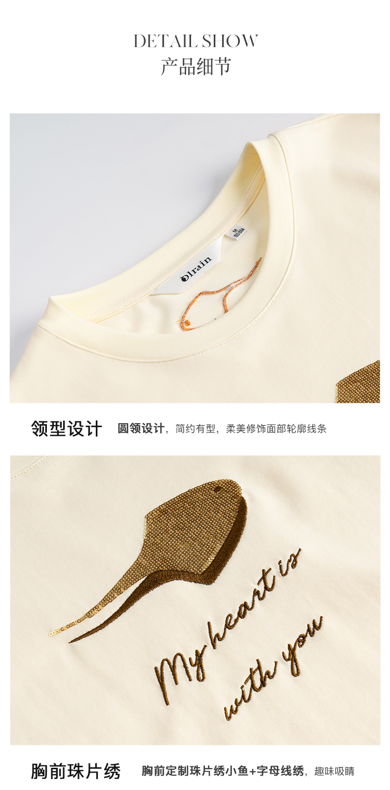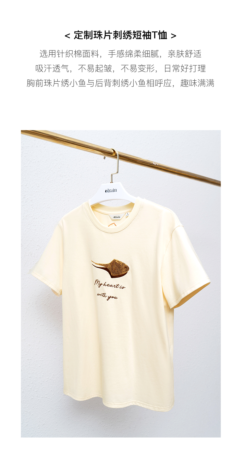 OLrain欧芮儿米白色套头连肩袖设计感上衣女夏季2025新款圆领T恤