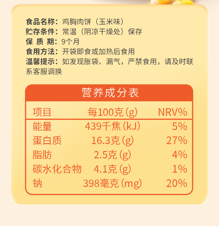 【189元任选20件】袋鼠先生玉米鸡胸肉饼60g
