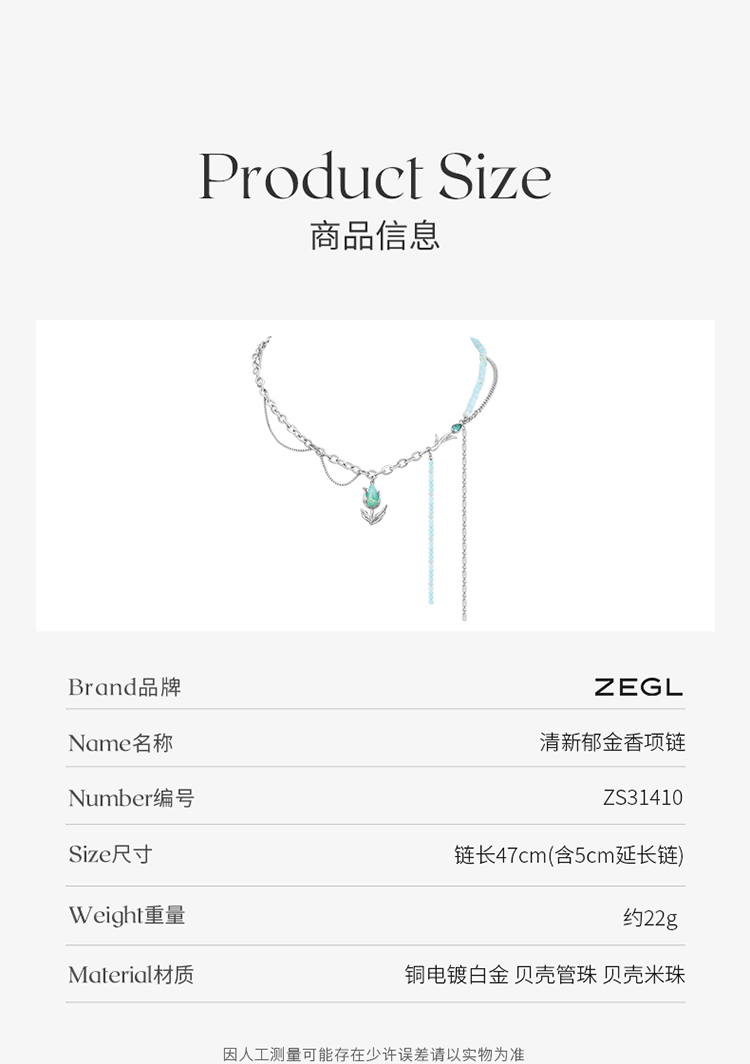 ZEGL设计师郁郁青葱系列新中式郁金香项链女高级设计感小众锁骨链