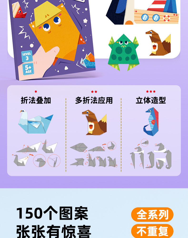 【150个折纸游戏 几何概念具体化】Pinwheel折纸书手工儿童立体彩色趣味创意diy制作幼儿园启蒙玩具