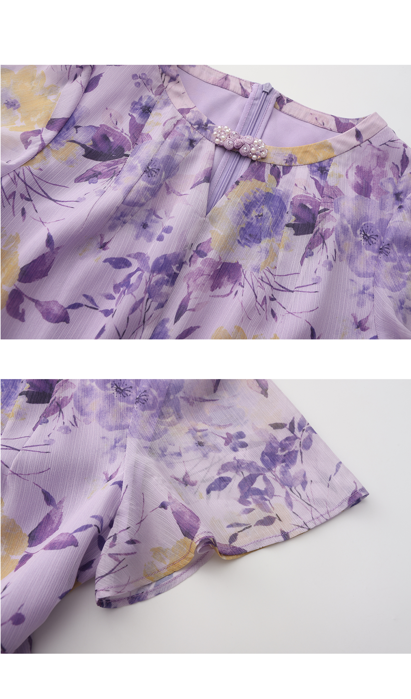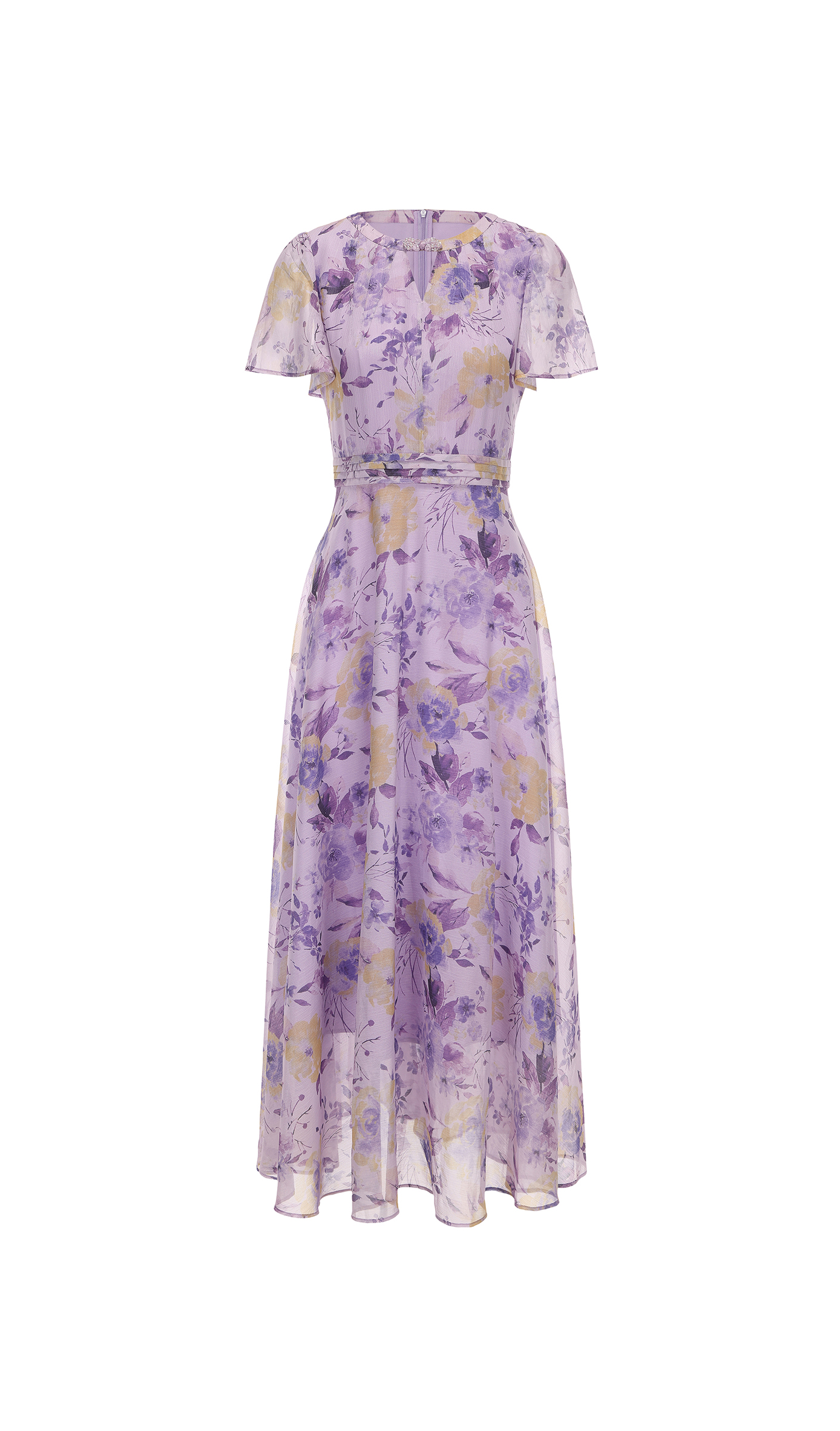 司歌雪纺碎花连衣裙圆领度假收腰长裙春夏女飘逸优雅A891437X