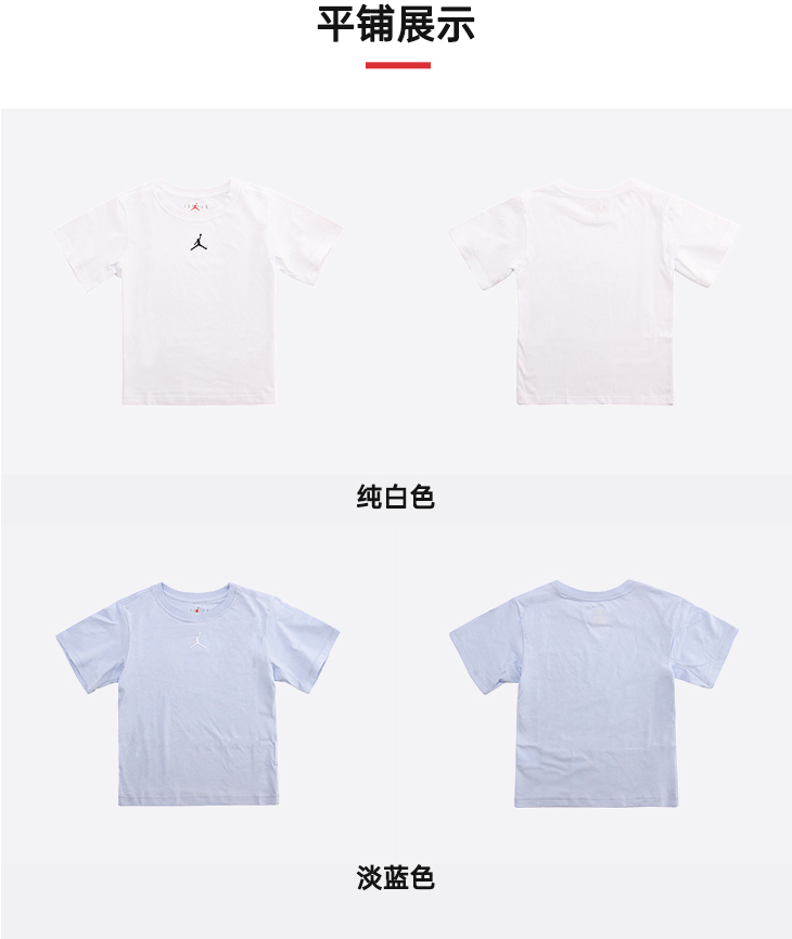 AIR JORDAN乔丹AJ童装夏新品女童运动简约纯棉短袖T恤JD2132042/JD2222026
