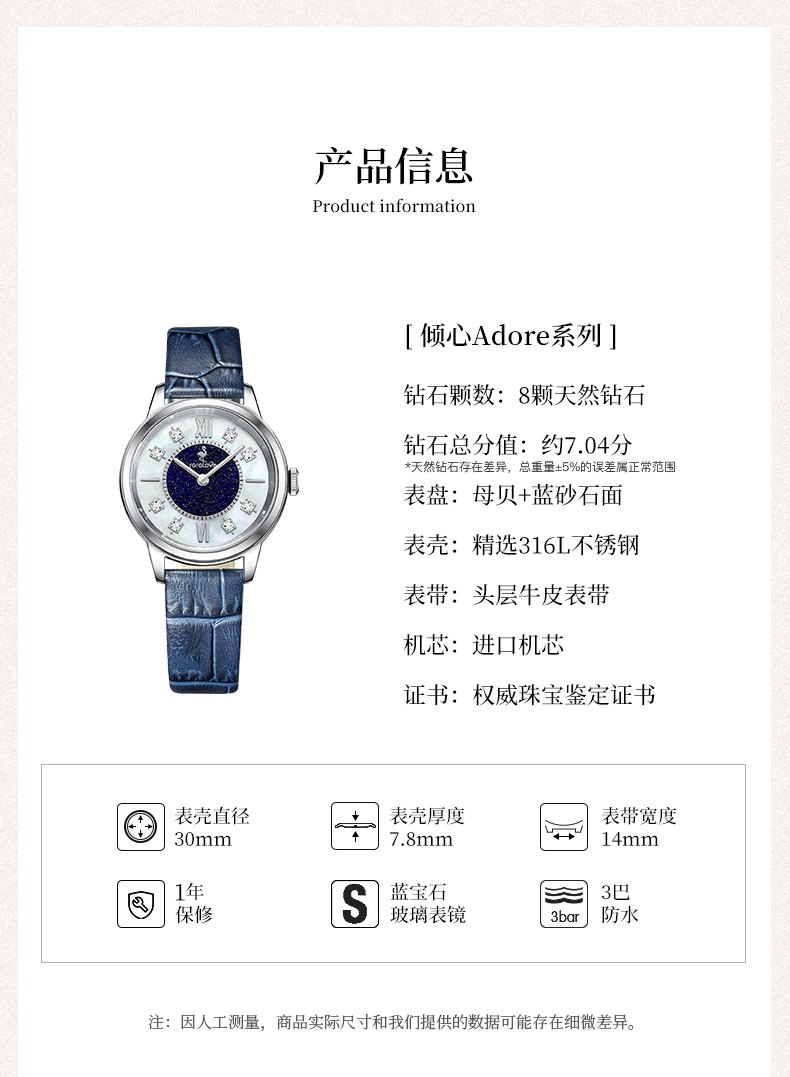 【ROROLOVE】邂逅Enchanted系列 天然钻石腕表 天然钻石满天星手表女明星代言同款女表礼物 (8颗钻)