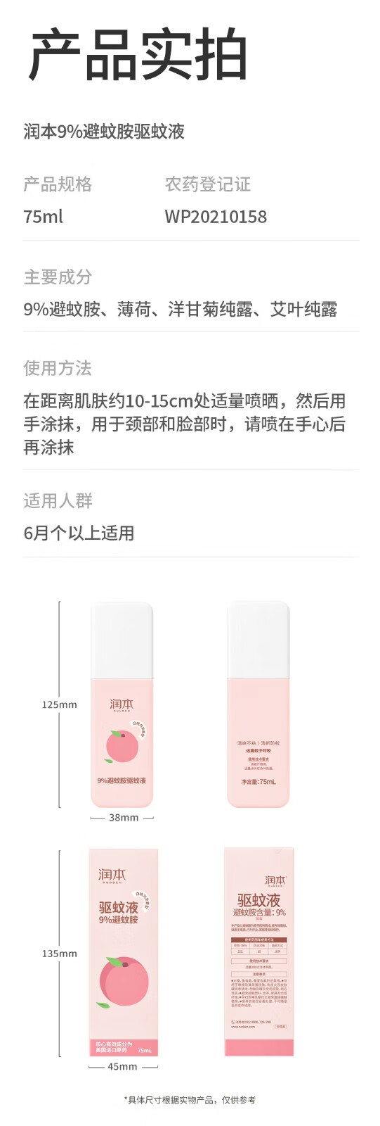 【润本】防蚊驱蚊液 9%避蚊胺-白桃乌龙 75ml -FN